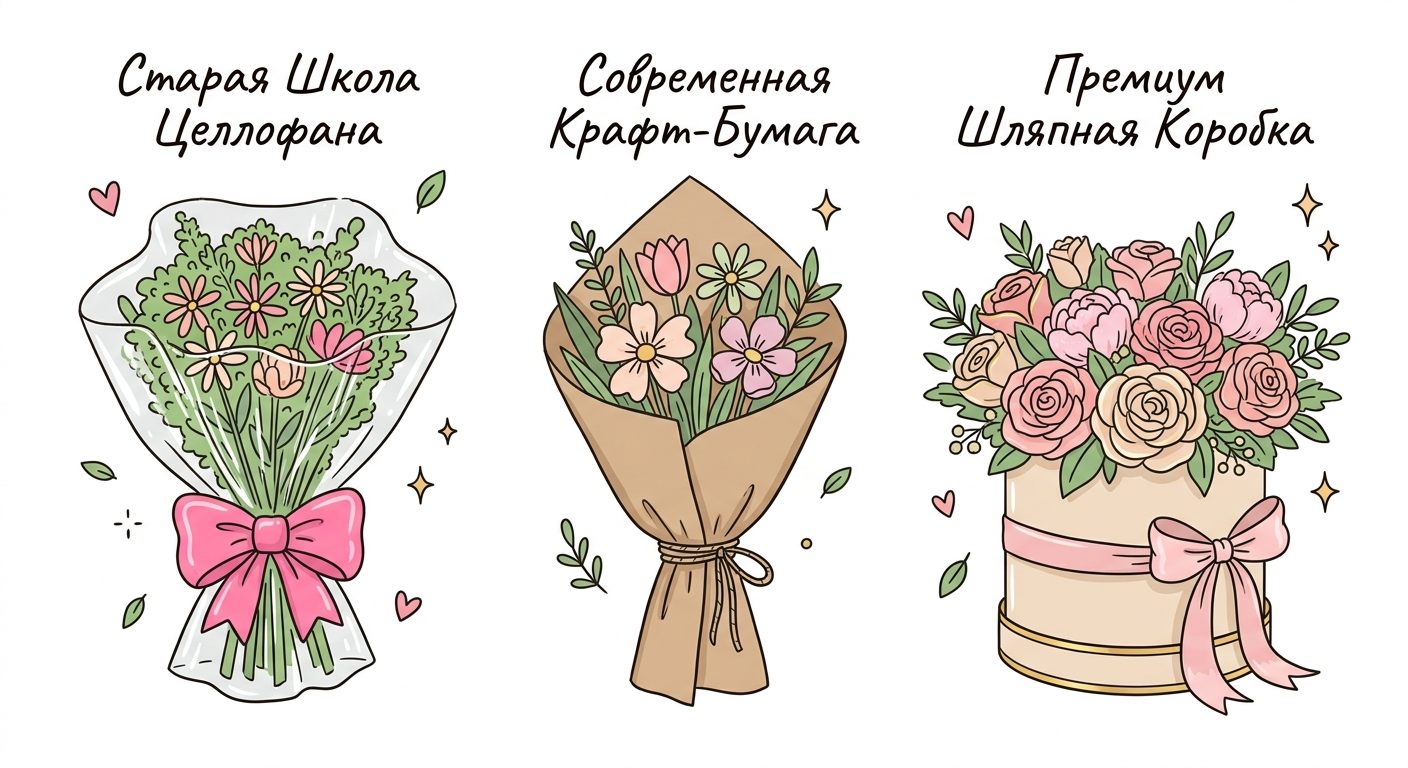 Эволюция упаковки — это история о том, как мы учились ценить детали. От технической необходимости защиты цветов мы пришли к высокому искусству презентации. Сегодня букет — это законченное высказывание, где важна каждая деталь: от оттенка ленты до фактуры бумаги.