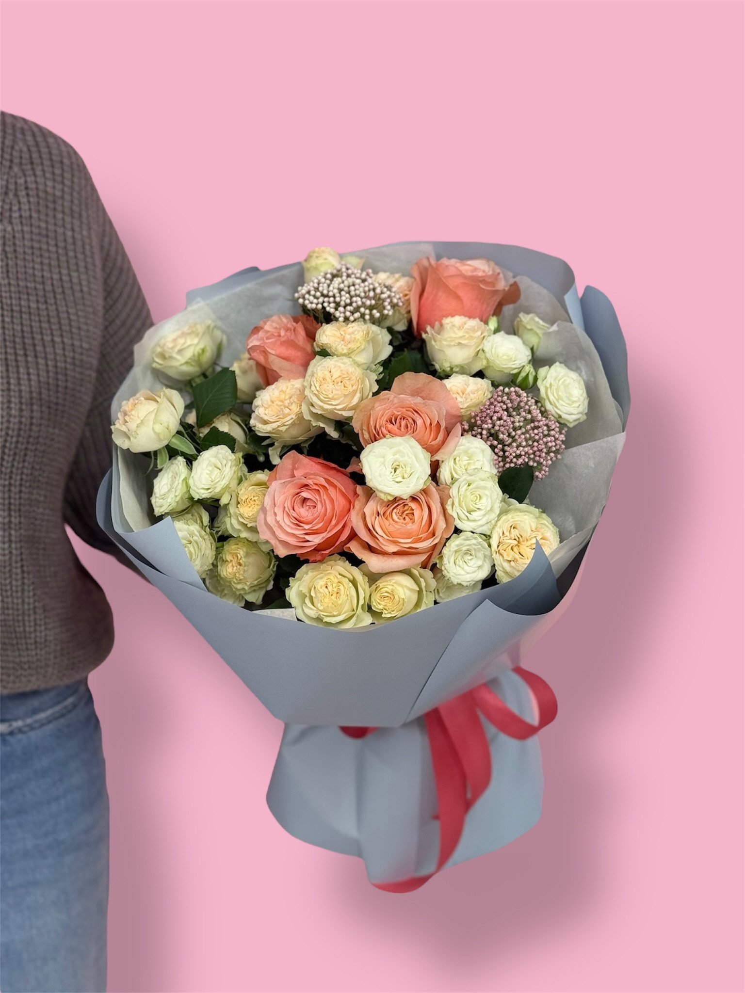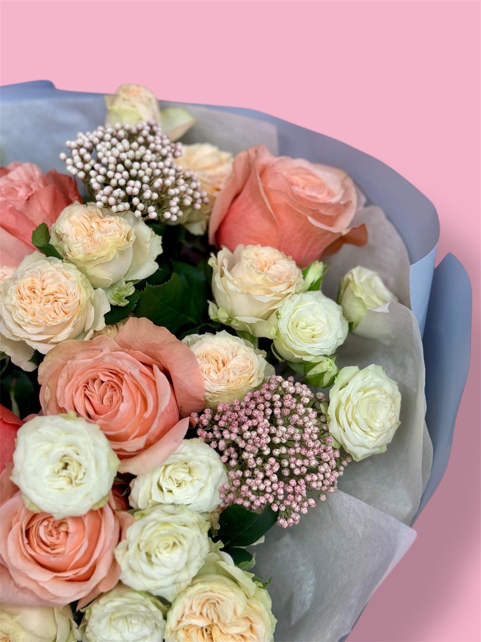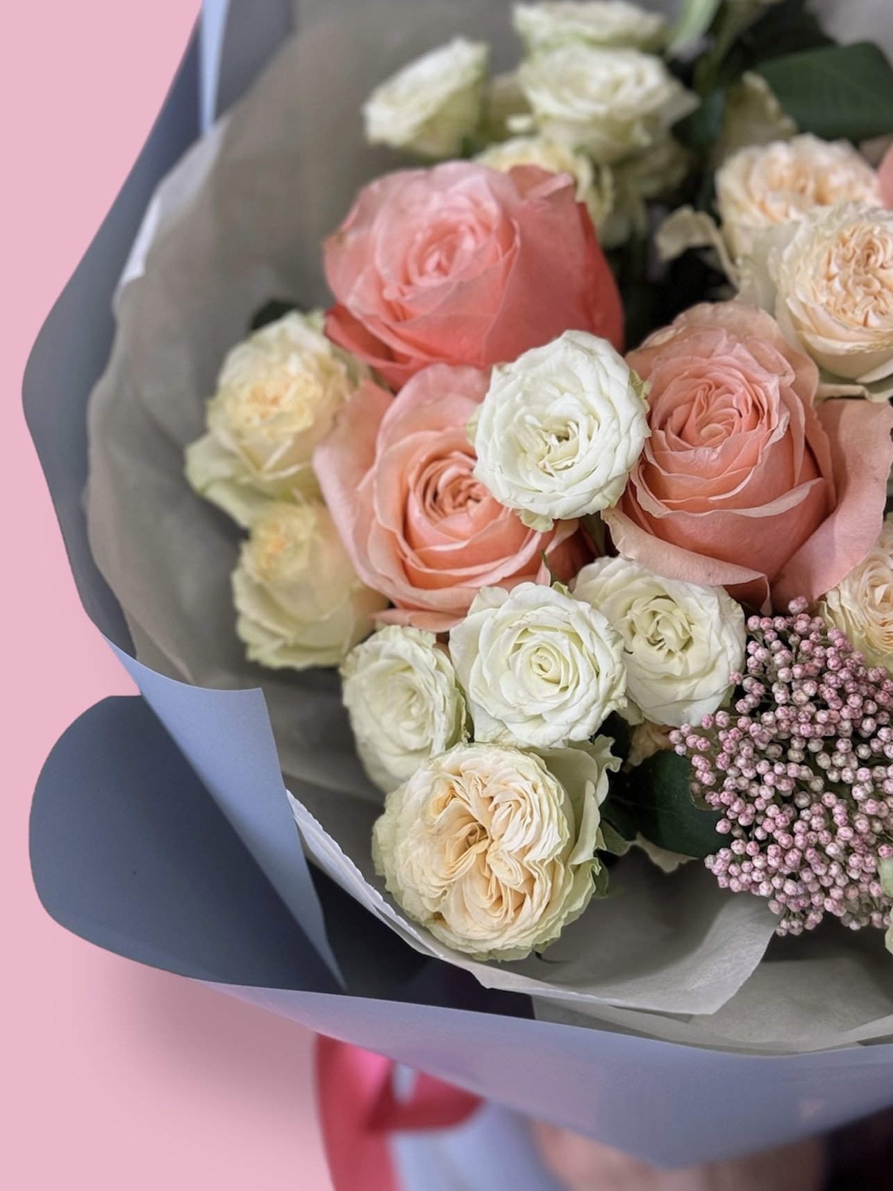 В случае отсутствия в наших магазинах цветов, входящих в состав букета, мы предложим вам заменить их на равные по стоимости либо проконсультируем по подбору другого букета.