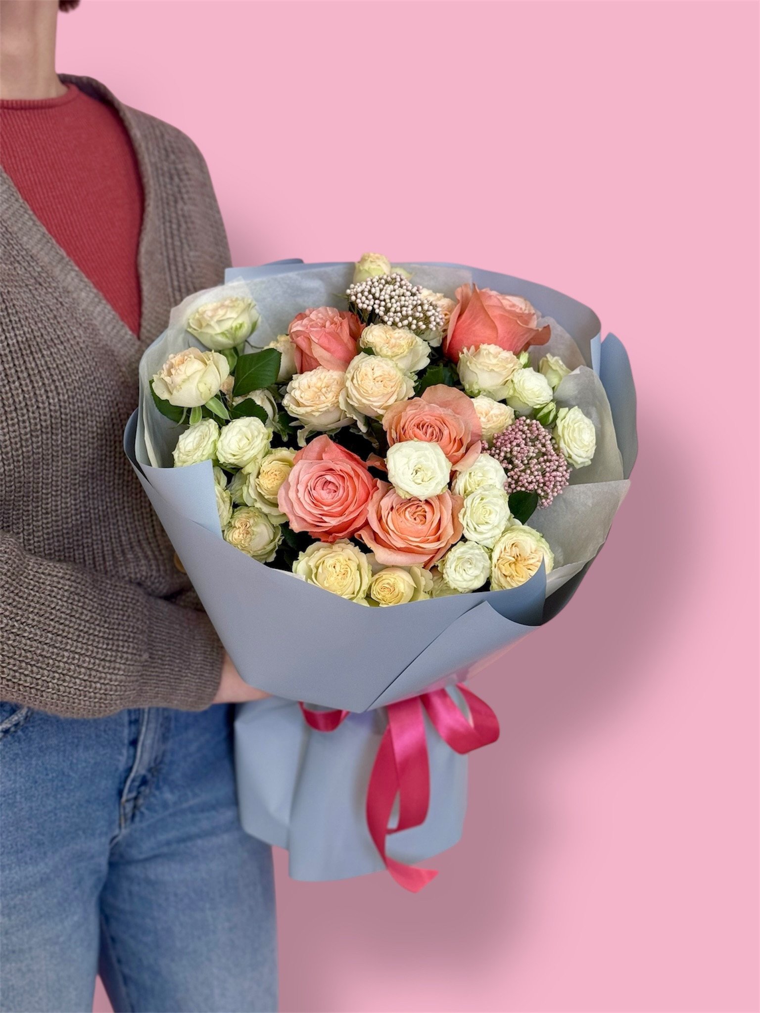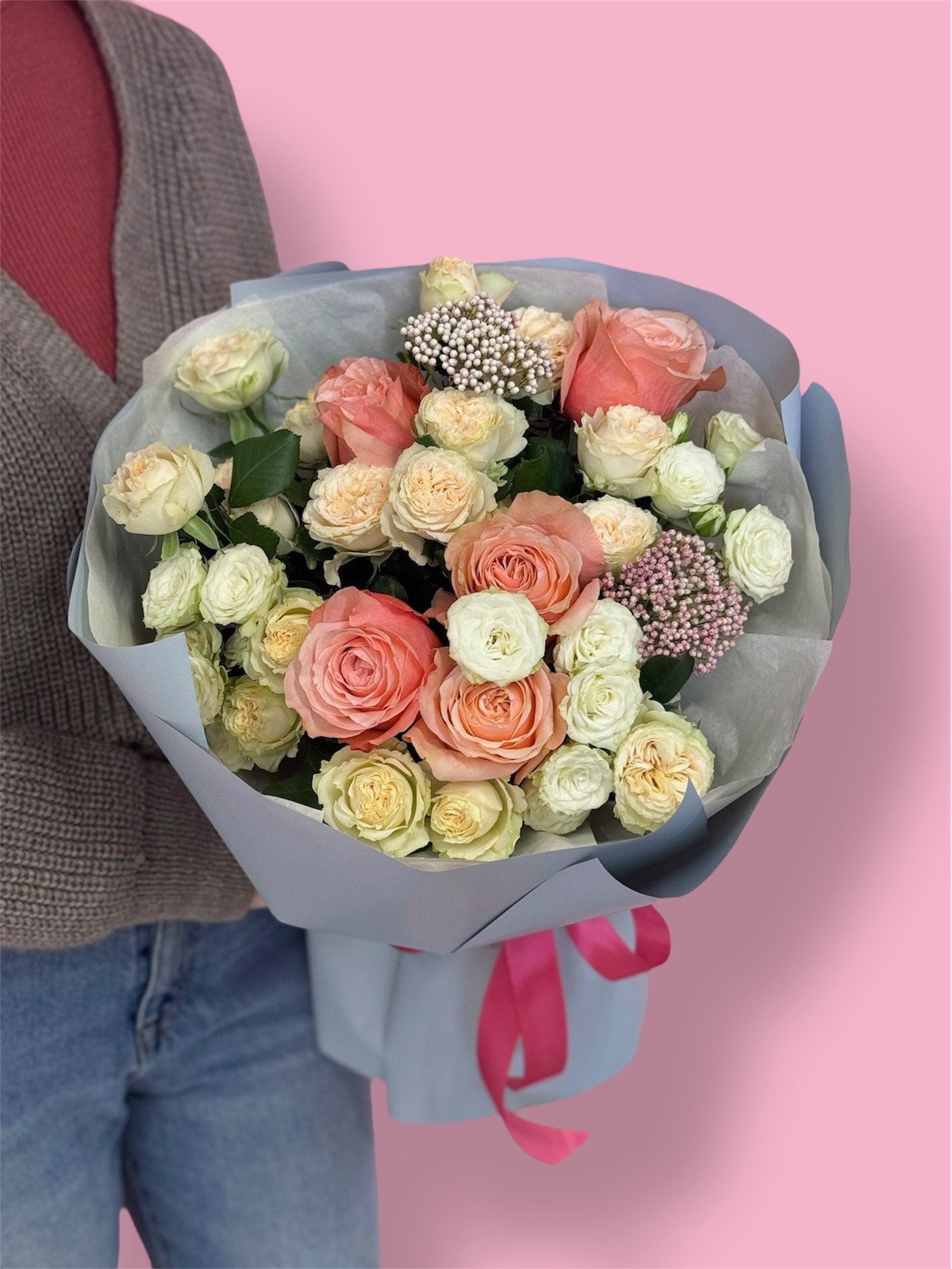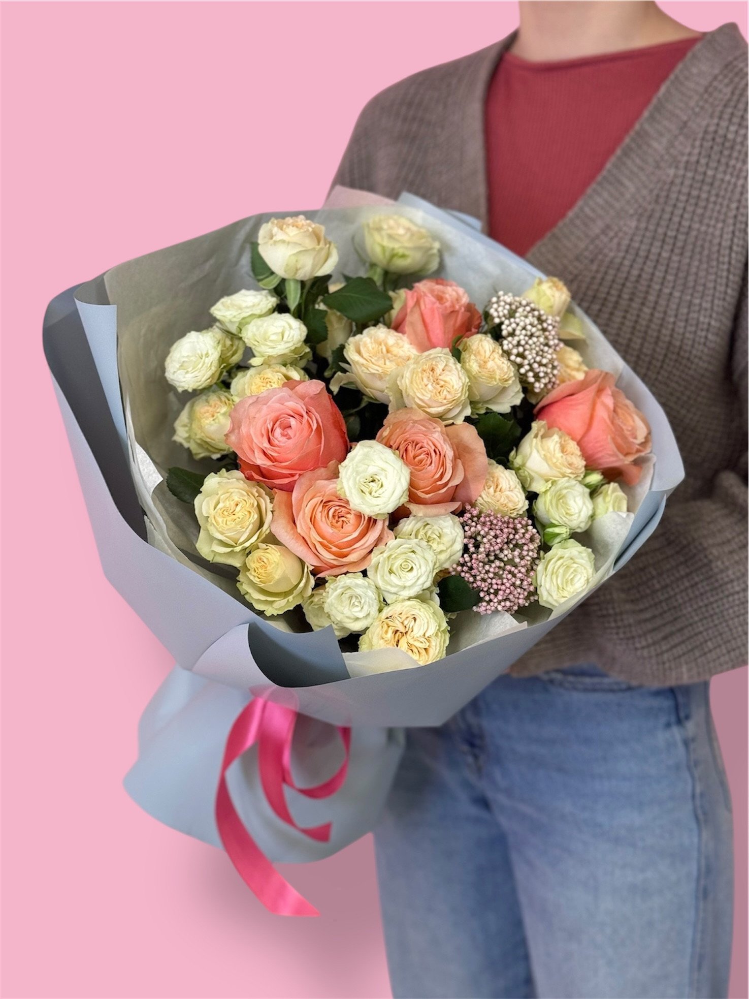 В случае отсутствия в наших магазинах цветов, входящих в состав букета, мы предложим вам заменить их на равные по стоимости либо проконсультируем по подбору другого букета.
