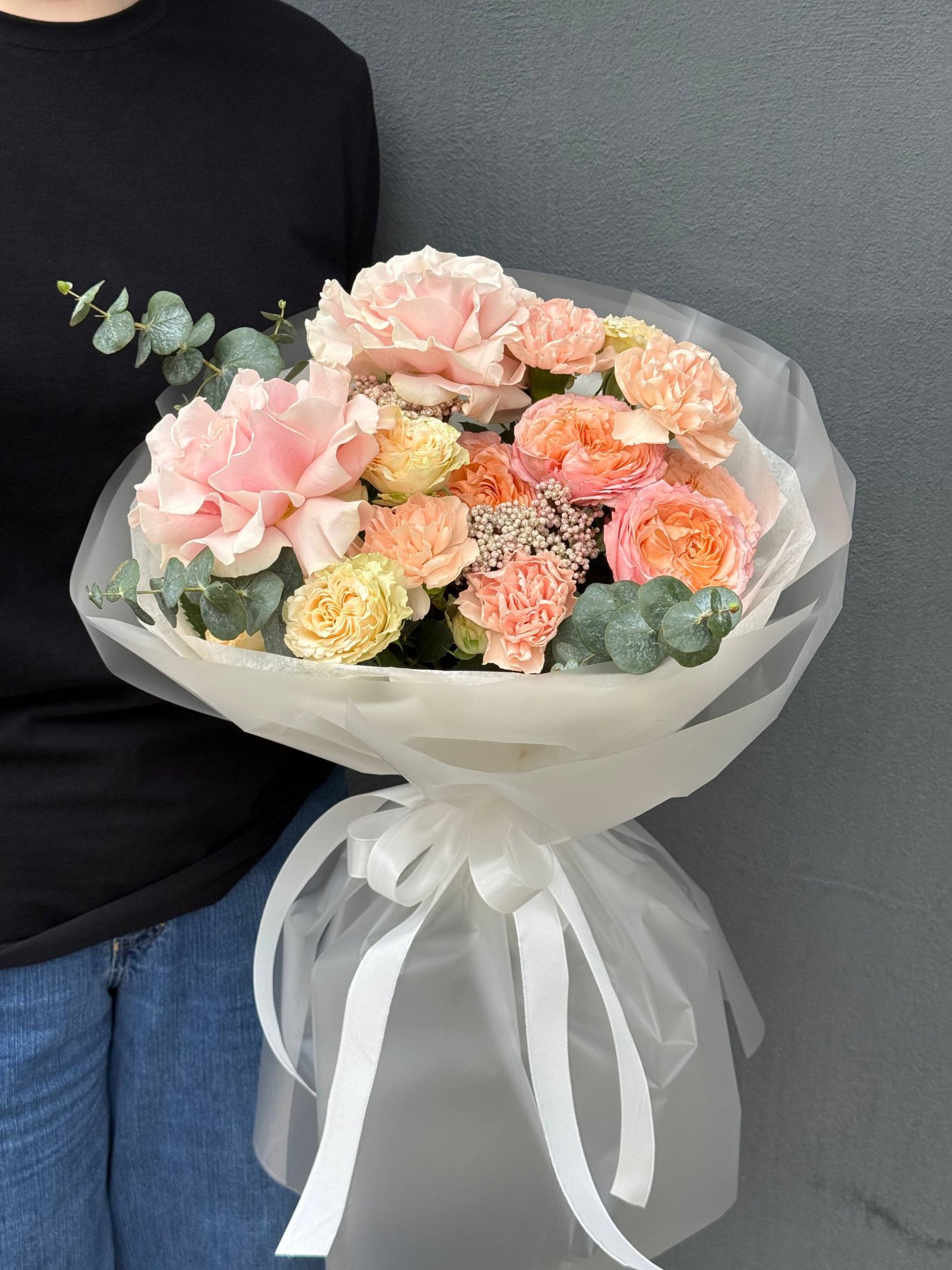 В случае отсутствия в наших магазинах цветов, входящих в состав букета, мы предложим вам заменить их на равные по стоимости либо проконсультируем по подбору другого букета.