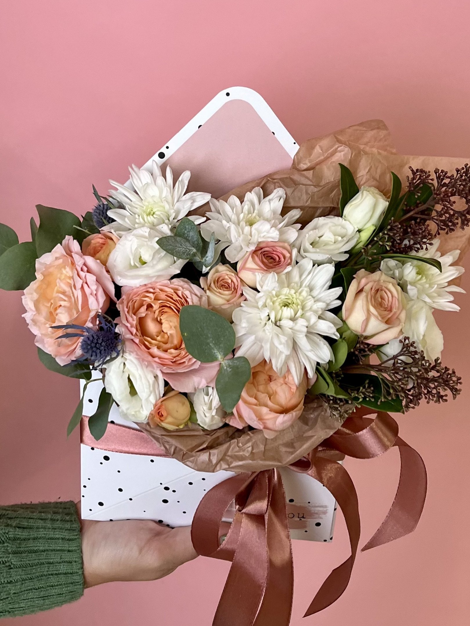 В случае отсутствия в наших магазинах цветов, входящих в состав букета, мы предложим вам заменить их на равные по стоимости либо проконсультируем по подбору другого букета.