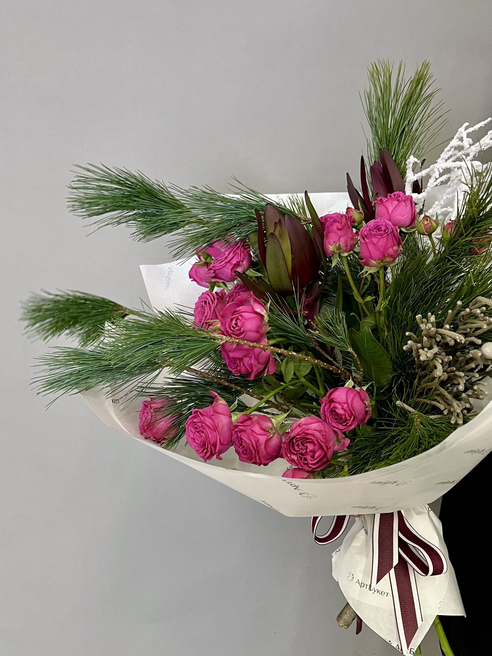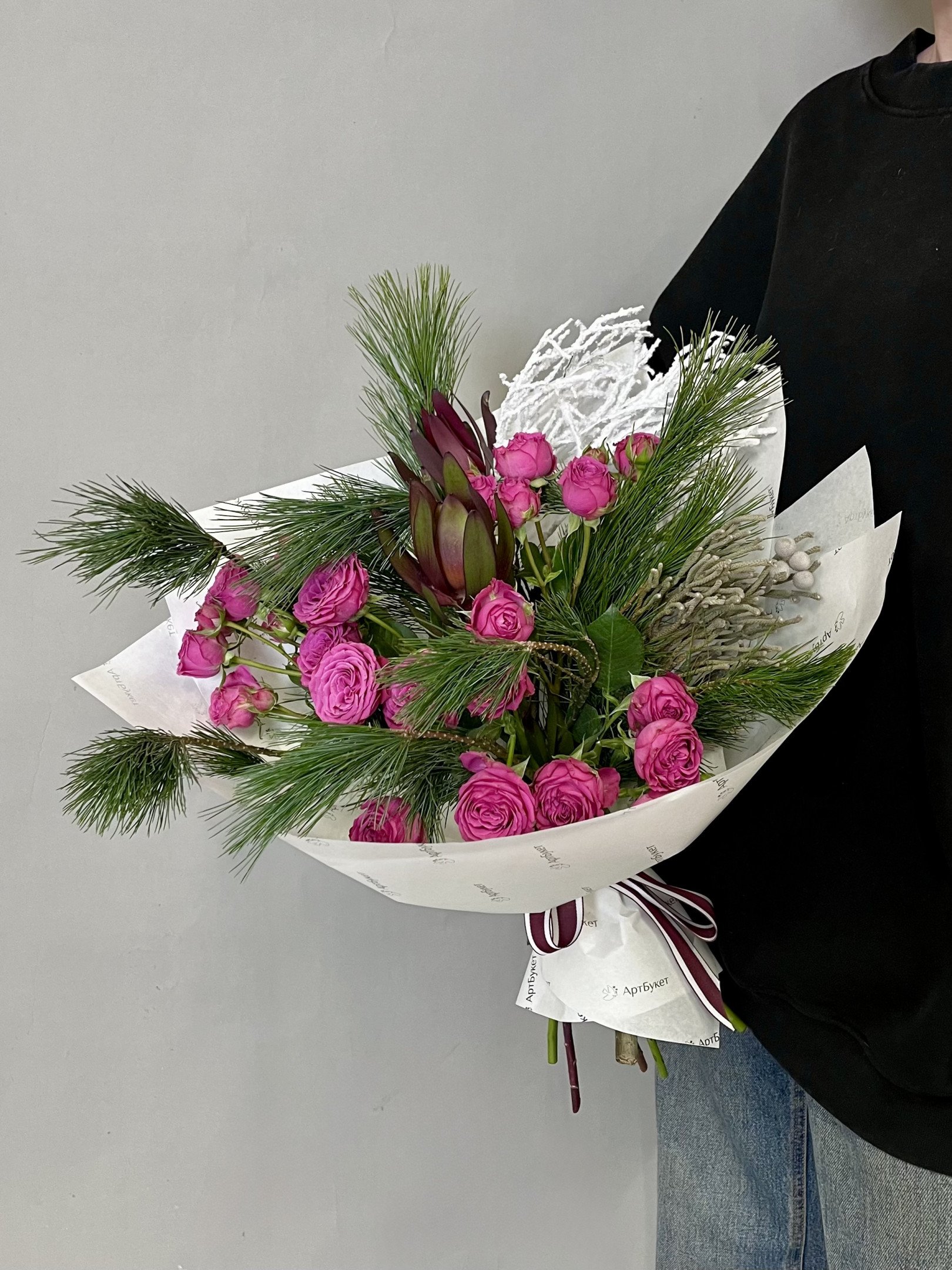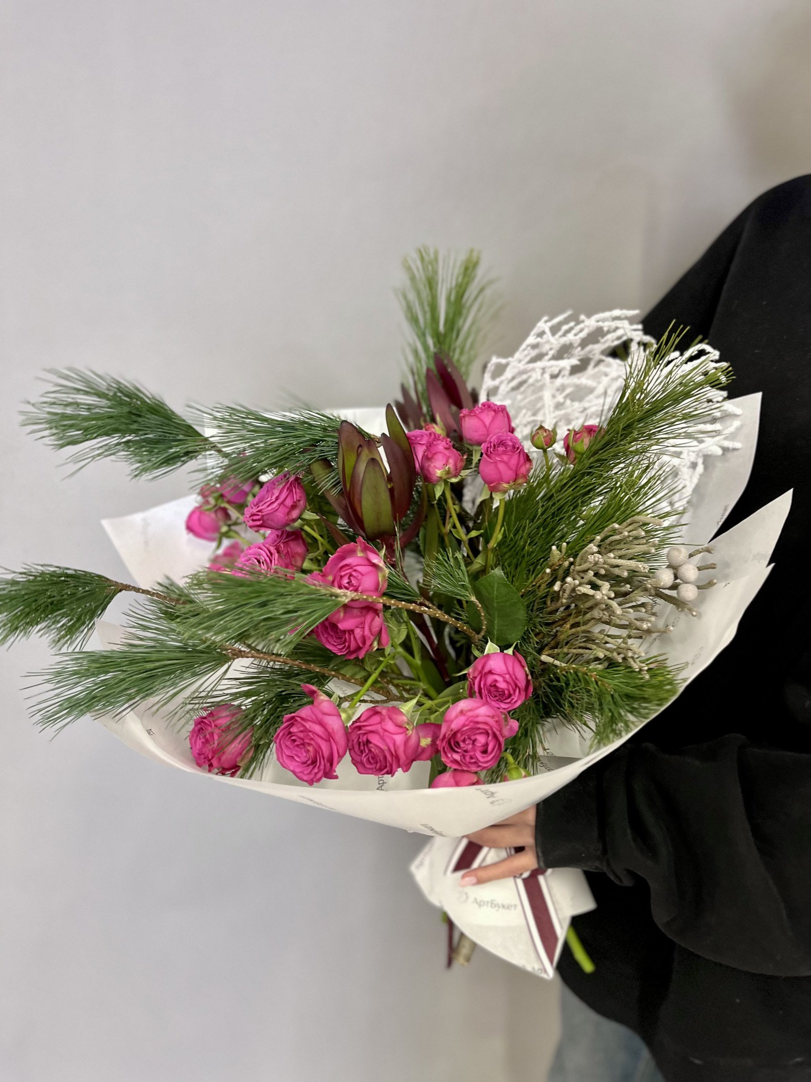 В случае отсутствия в наших магазинах цветов, входящих в состав букета, мы предложим вам заменить их на равные по стоимости либо проконсультируем по подбору другого букета.