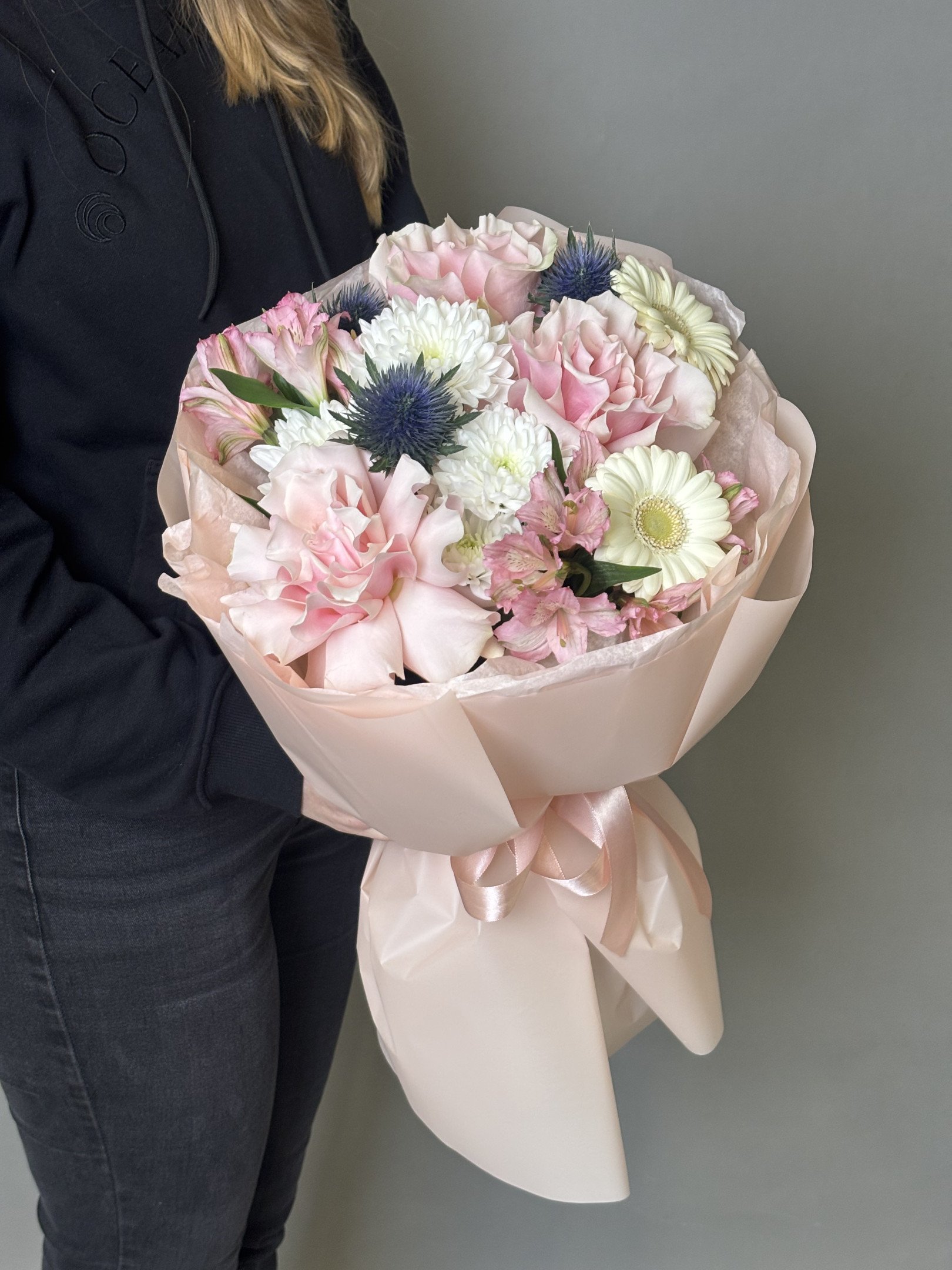 В случае отсутствия в наших магазинах цветов, входящих в состав букета, мы предложим вам заменить их на равные по стоимости либо проконсультируем по подбору другого букета.