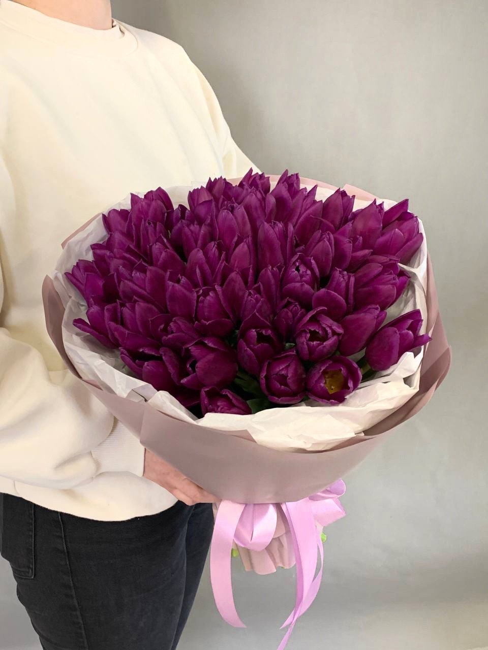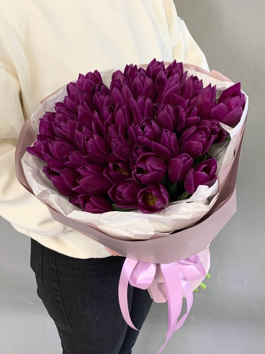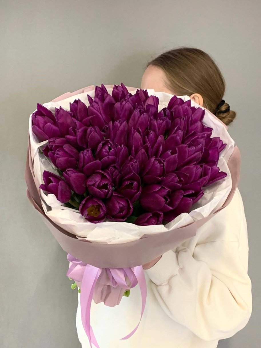 Букет из 51 фиолетового тюльпана