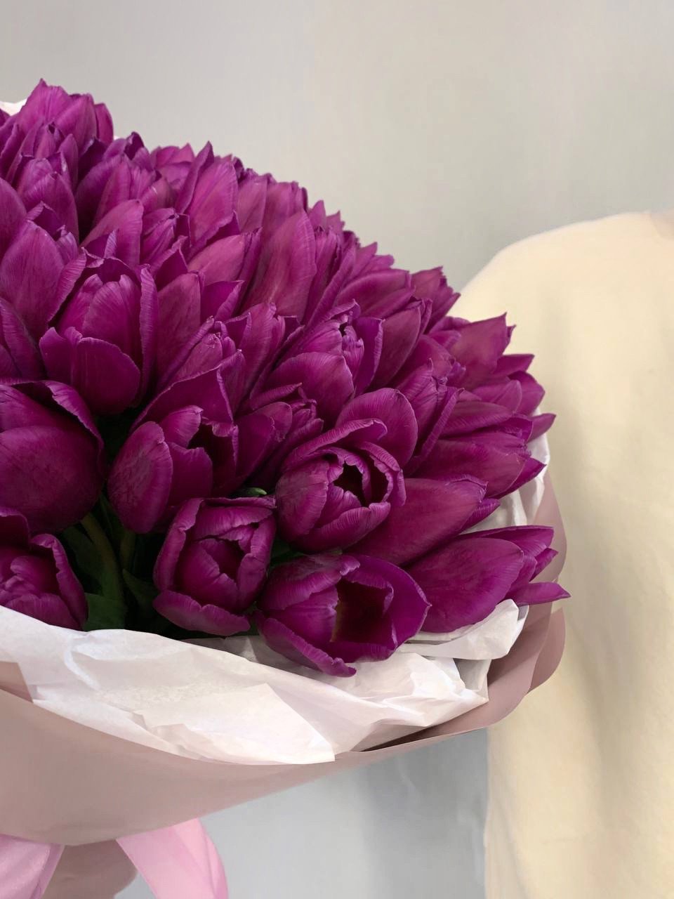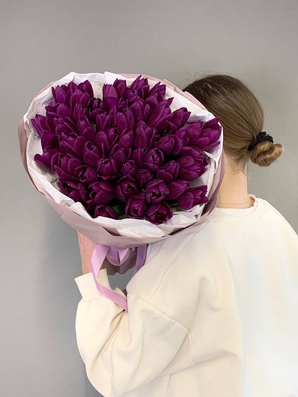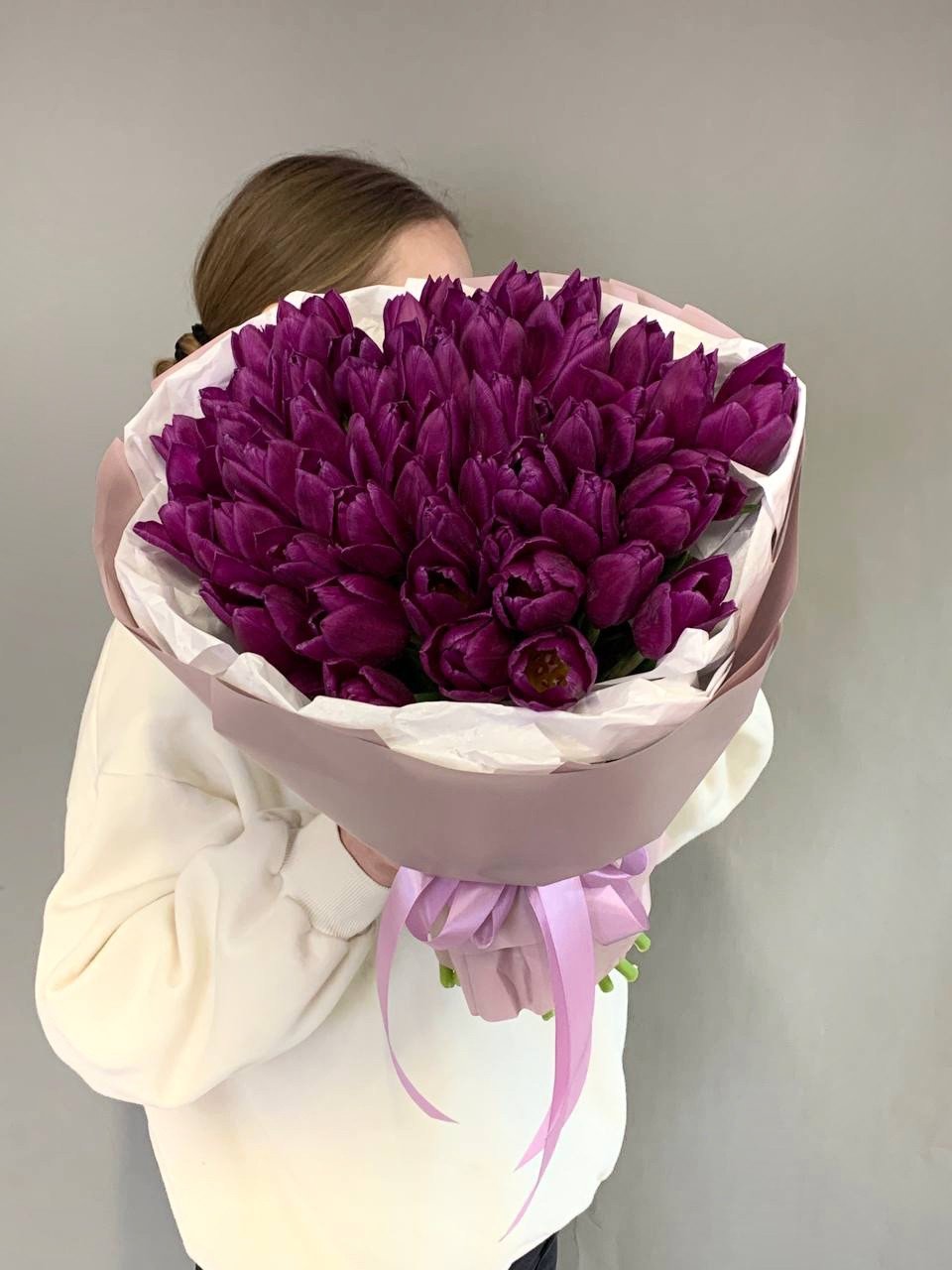 Букет из 51 фиолетового тюльпана