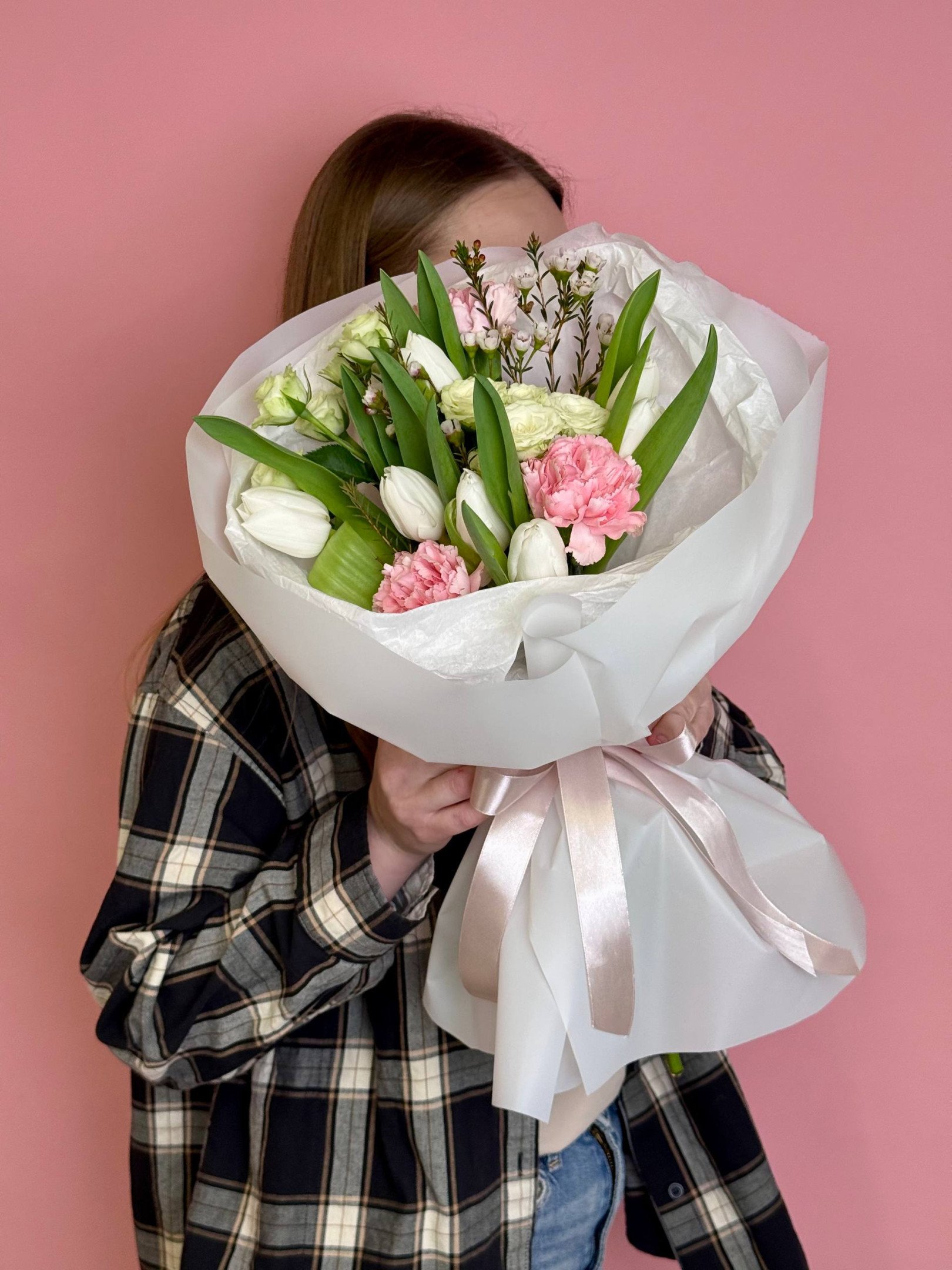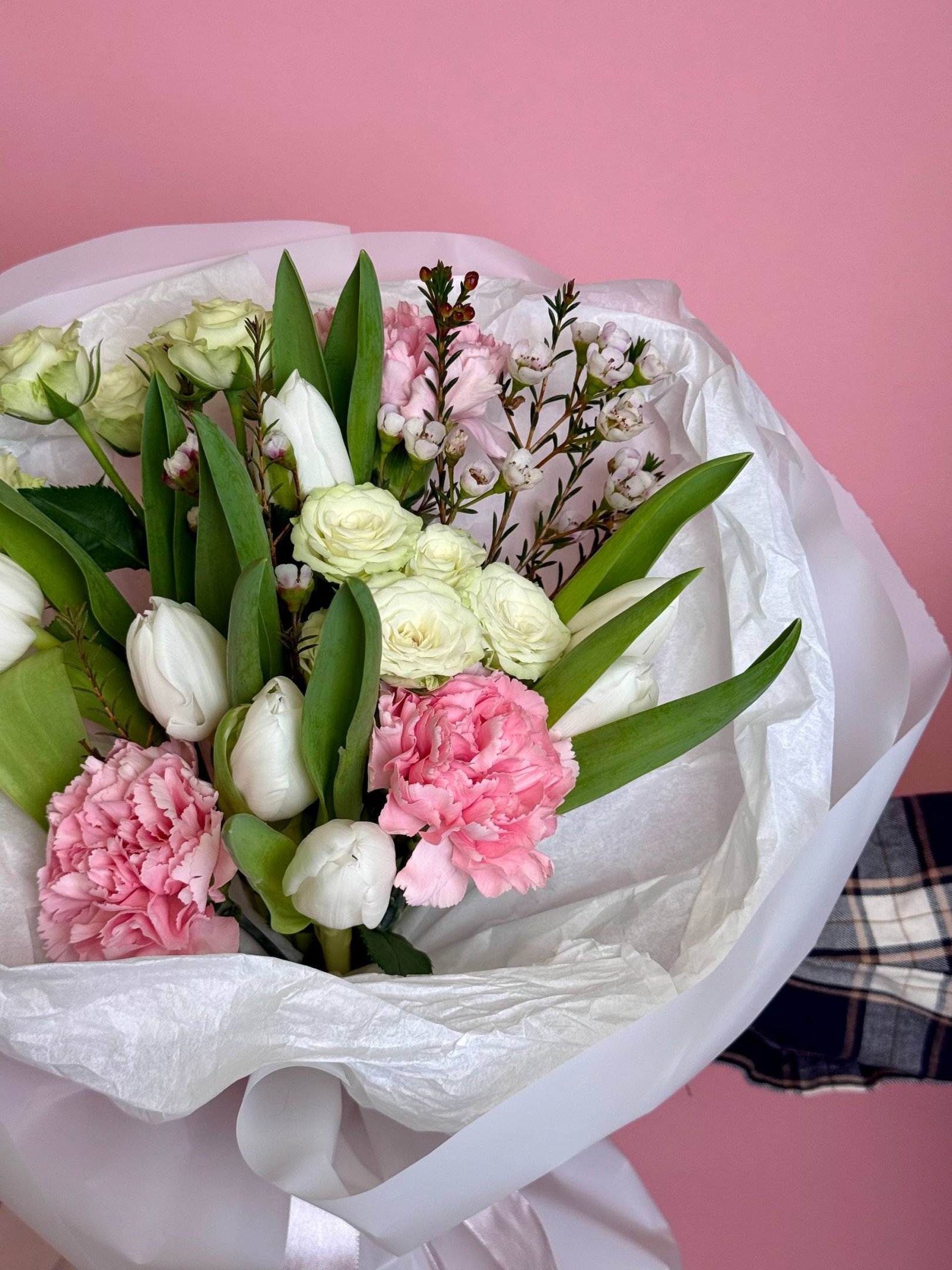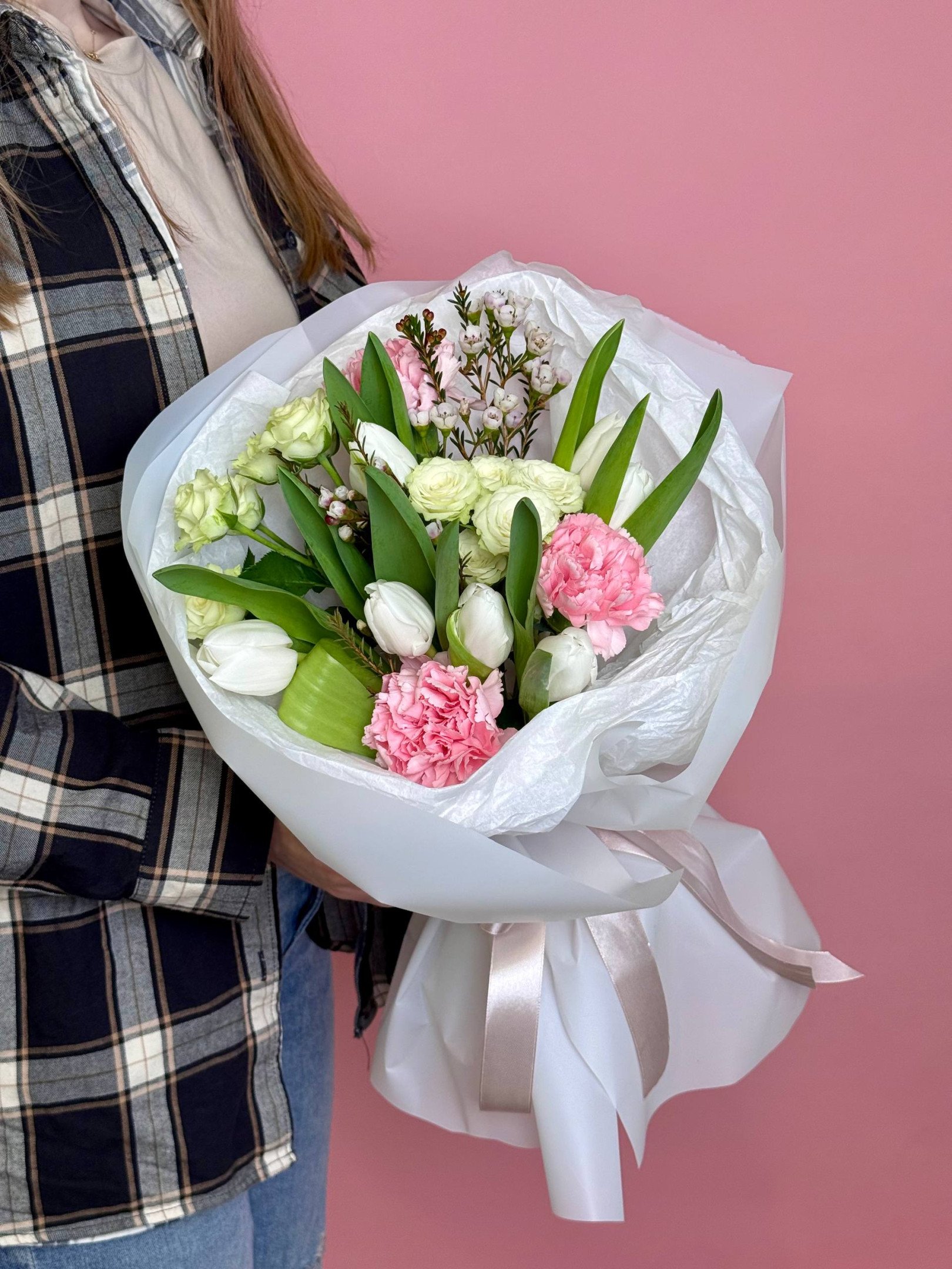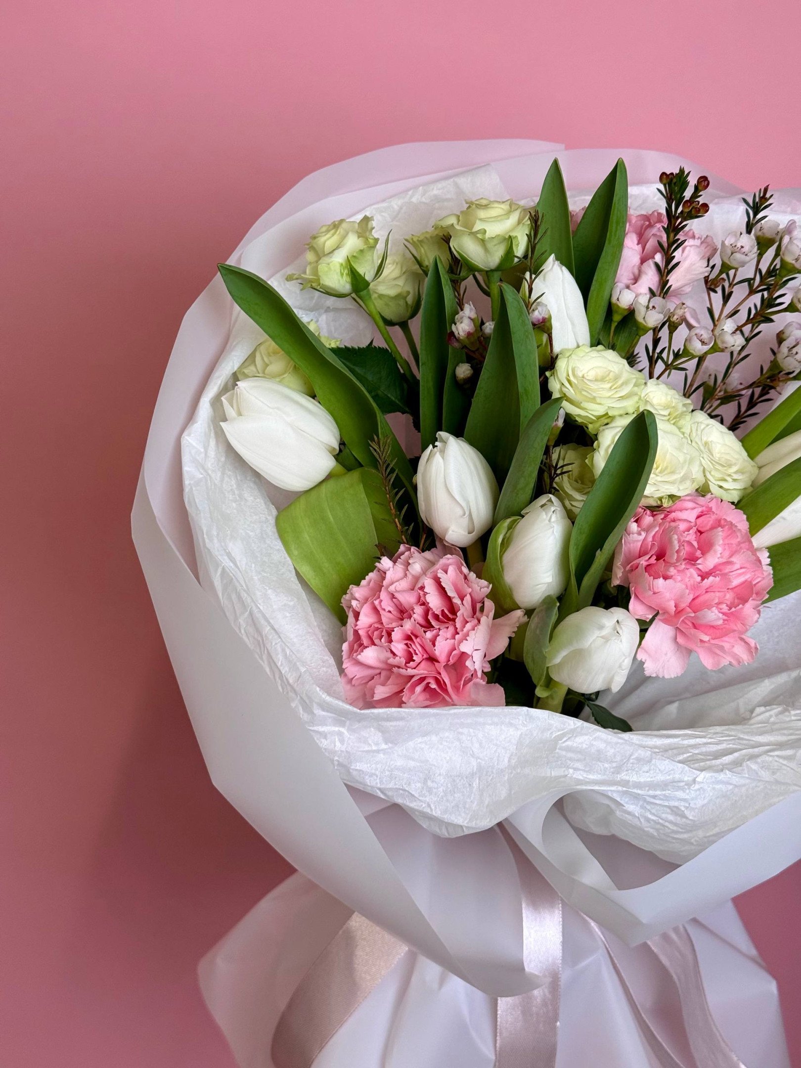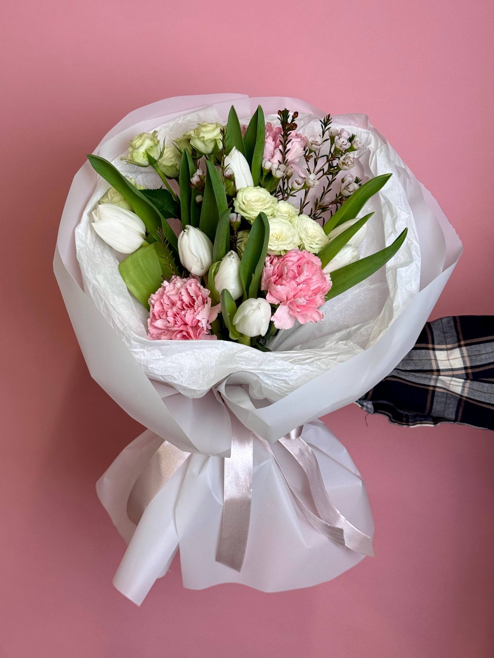 Букет из гвоздик и тюльпанов «Дыхание весны»