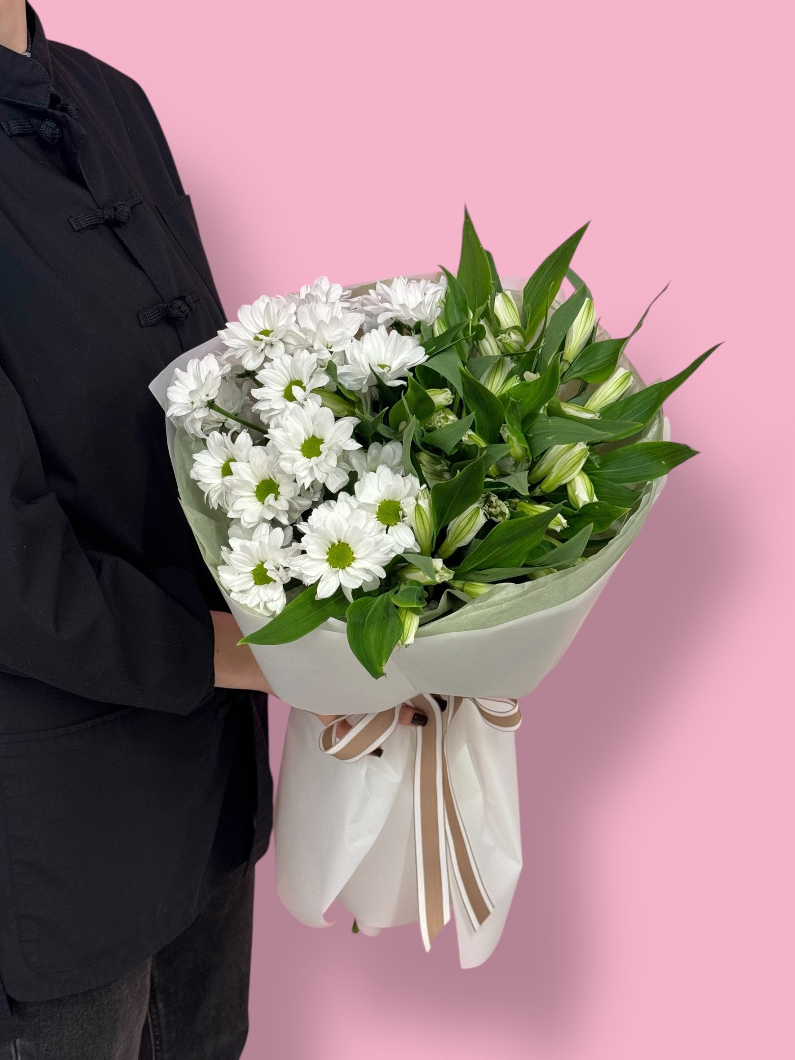 В случае отсутствия в наших магазинах цветов, входящих в состав букета, мы предложим вам заменить их на равные по стоимости либо проконсультируем по подбору другого букета.
