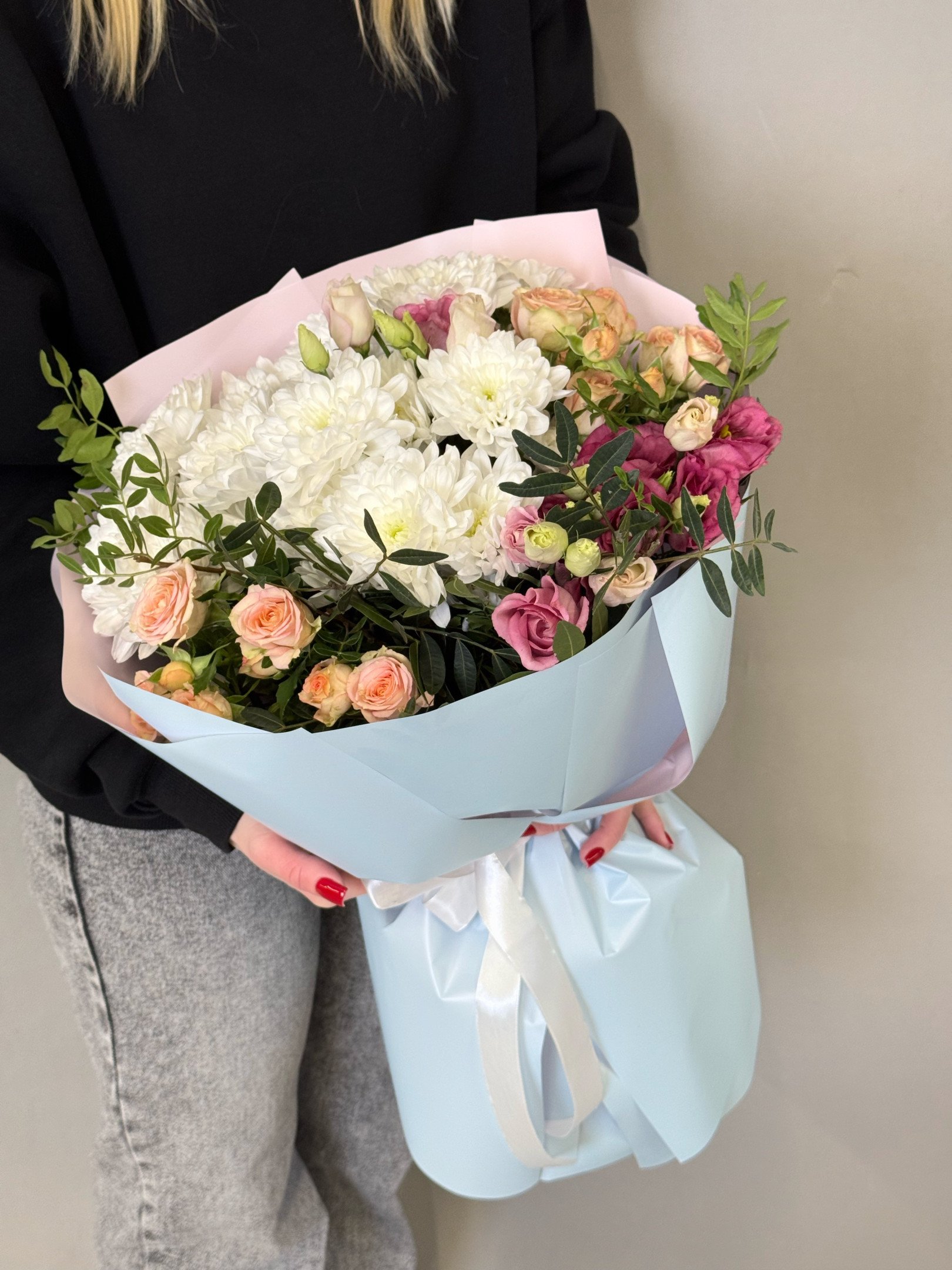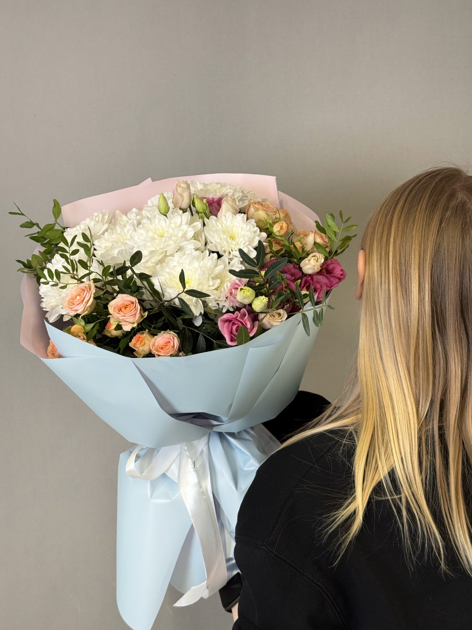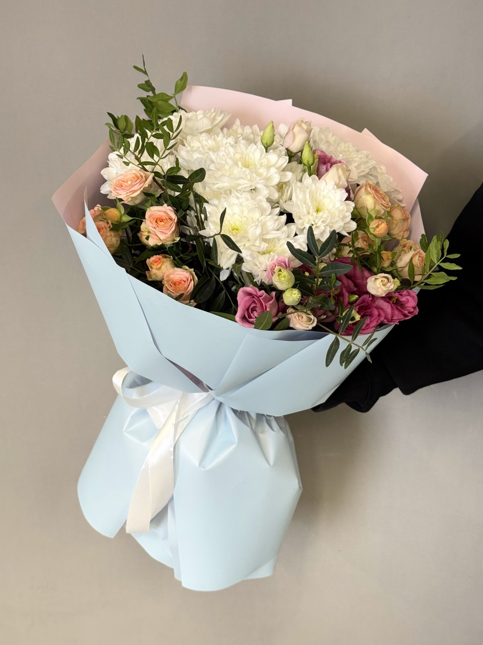 В случае отсутствия в наших магазинах цветов, входящих в состав букета, мы предложим вам заменить их на равные по стоимости либо проконсультируем по подбору другого букета.