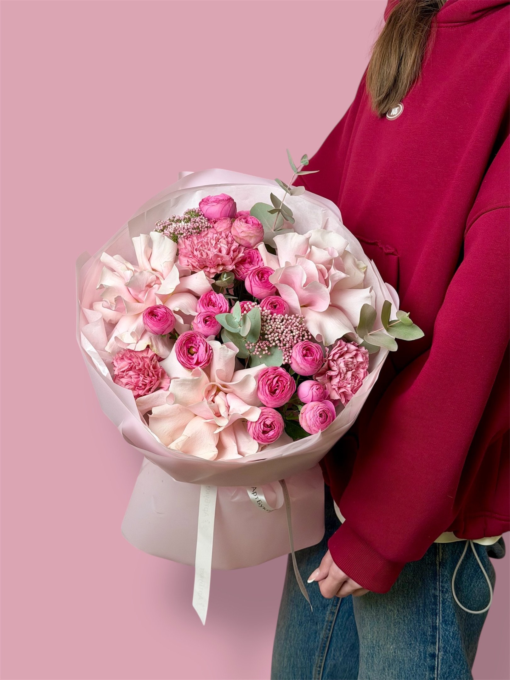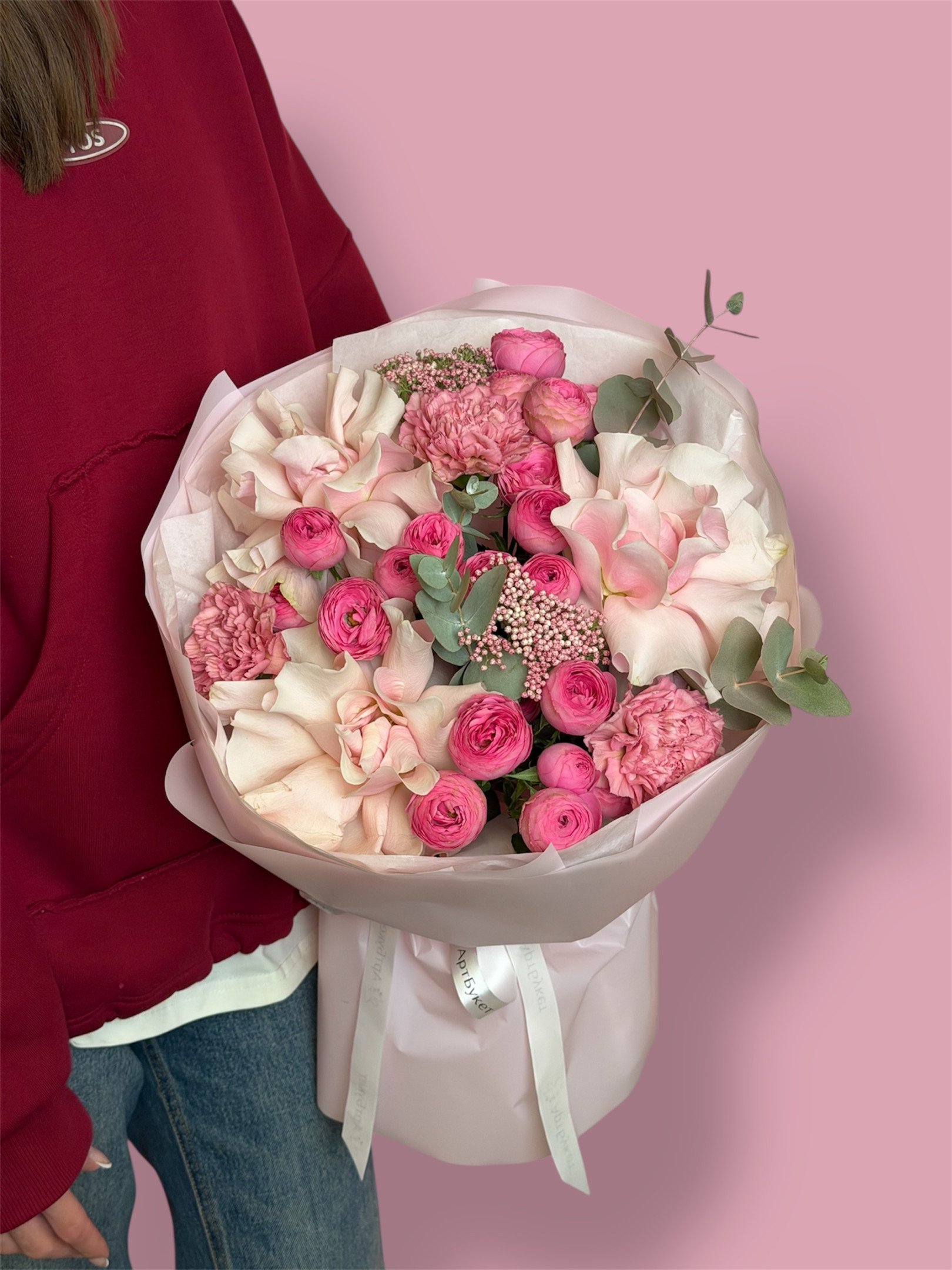 В случае отсутствия в наших магазинах цветов, входящих в состав букета, мы предложим вам заменить их на равные по стоимости либо проконсультируем по подбору другого букета.