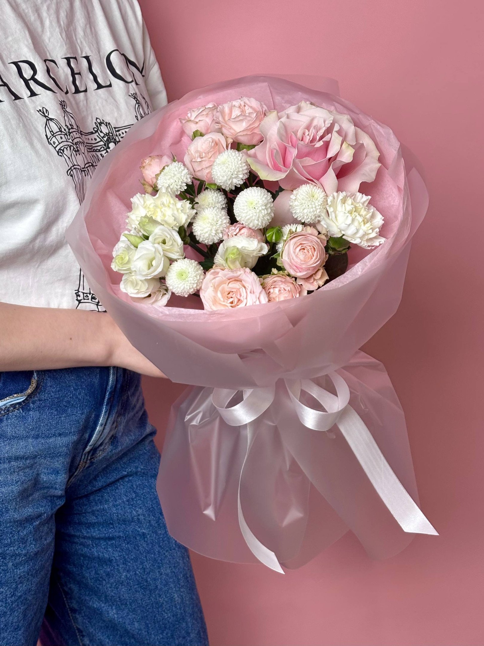 В случае отсутствия в наших магазинах цветов, входящих в состав букета, мы предложим вам заменить их на равные по стоимости либо проконсультируем по подбору другого букета.