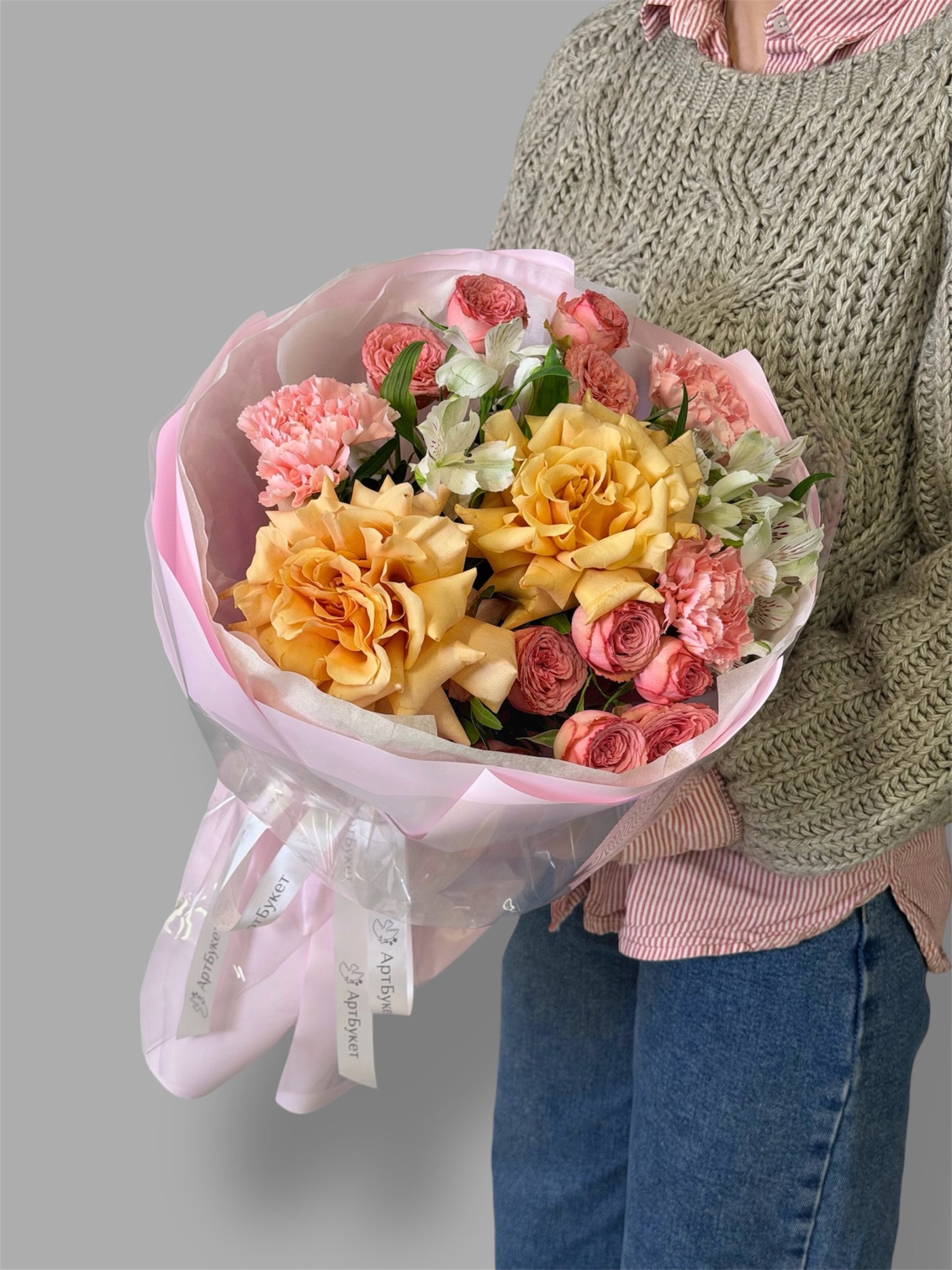 В случае отсутствия в наших магазинах цветов, входящих в состав букета, мы предложим вам заменить их на равные по стоимости либо проконсультируем по подбору другого букета.
