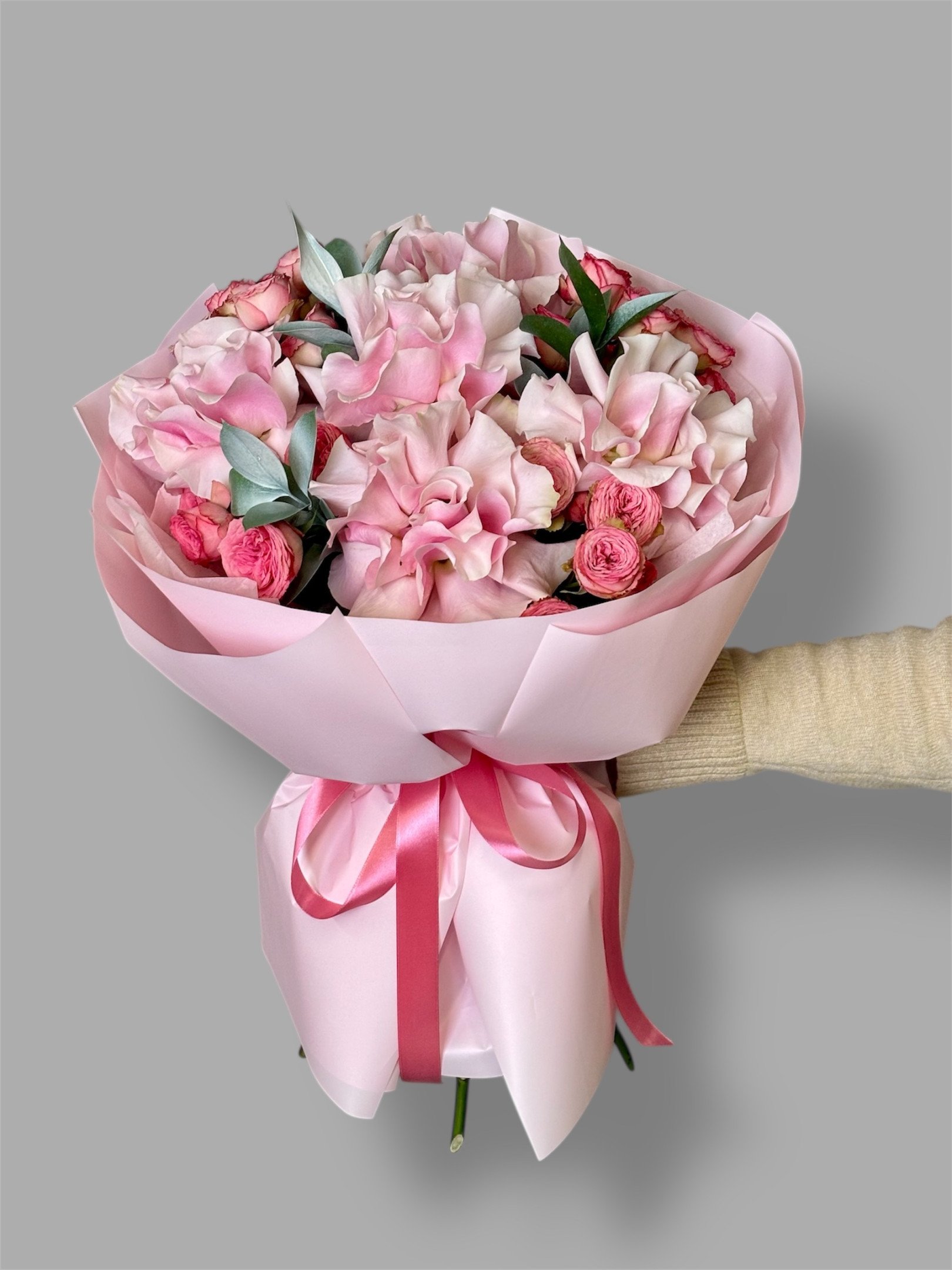 В случае отсутствия в наших магазинах цветов, входящих в состав букета, мы предложим вам заменить их на равные по стоимости либо проконсультируем по подбору другого букета.