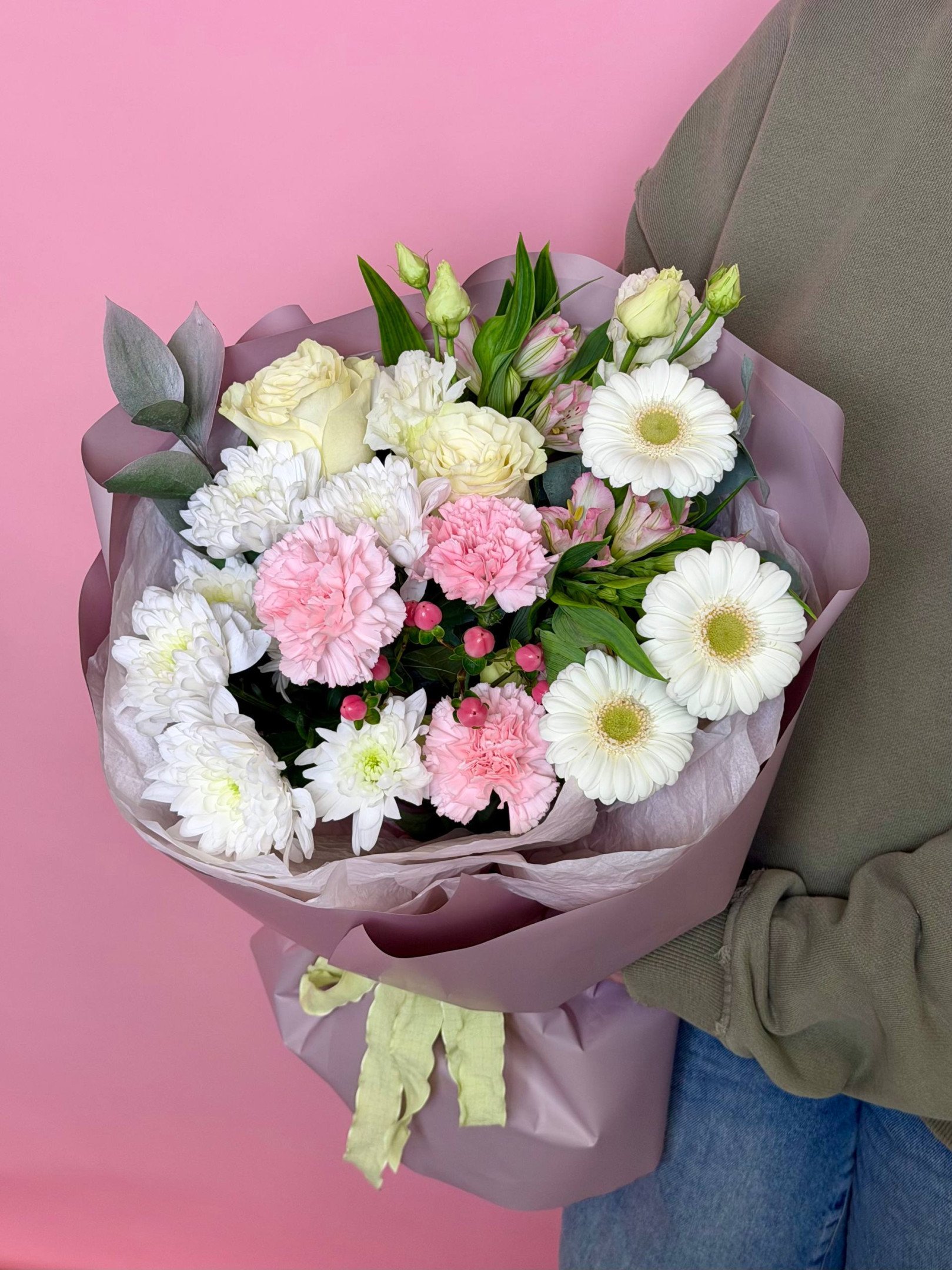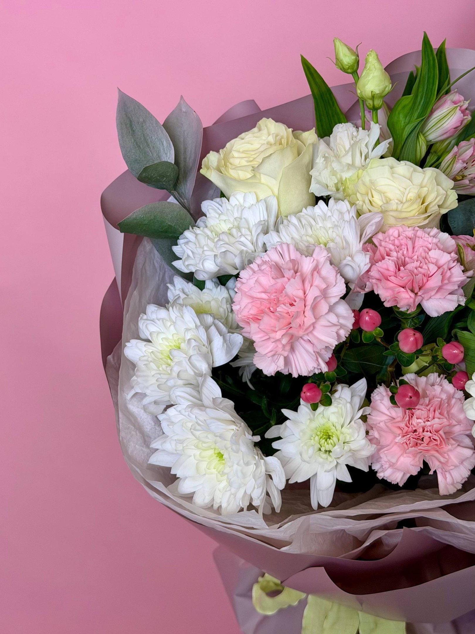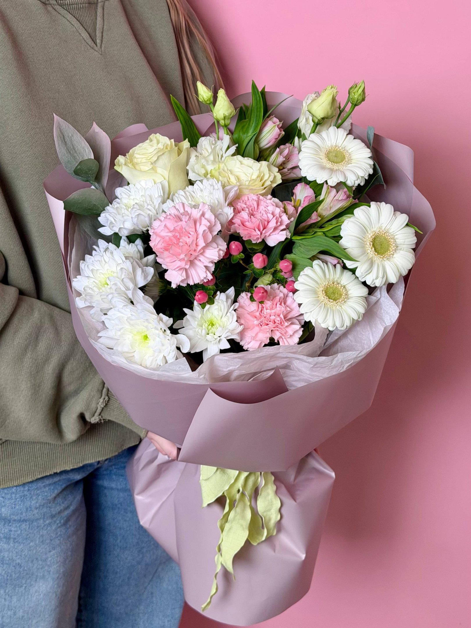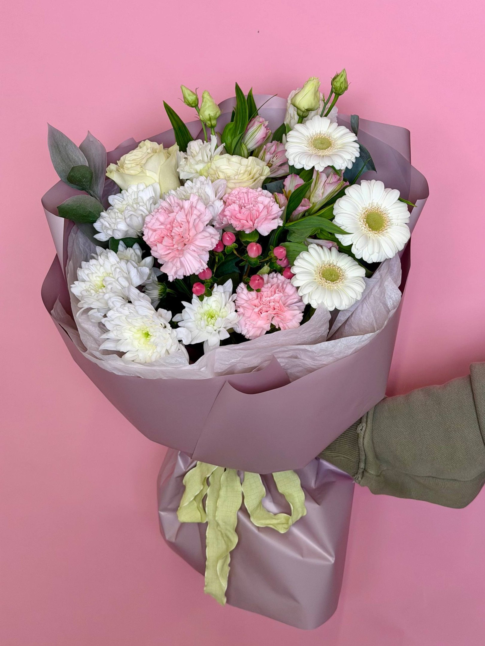 В случае отсутствия в наших магазинах цветов, входящих в состав букета, мы предложим вам заменить их на равные по стоимости либо проконсультируем по подбору другого букета.