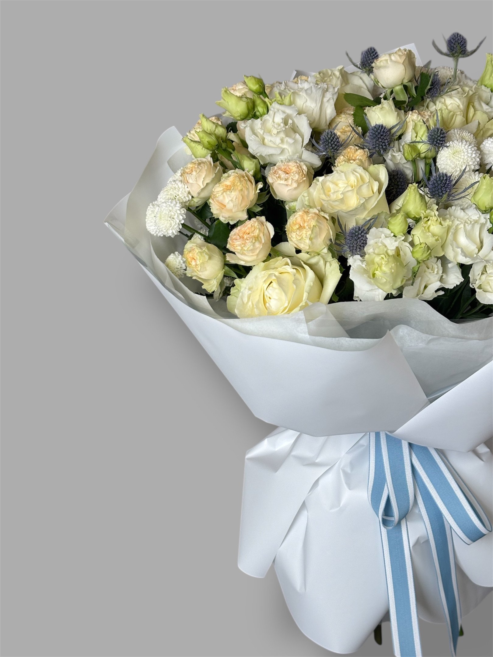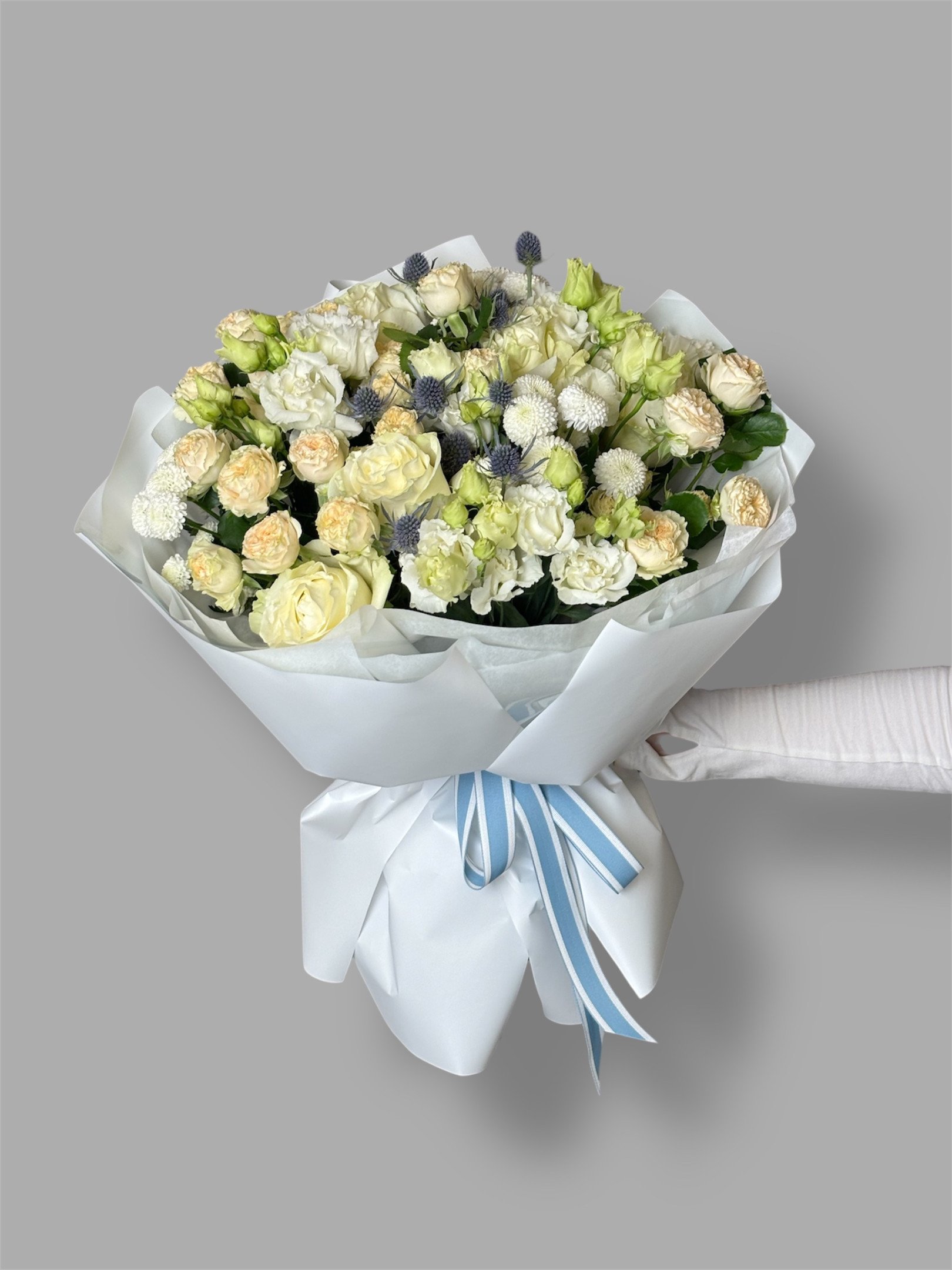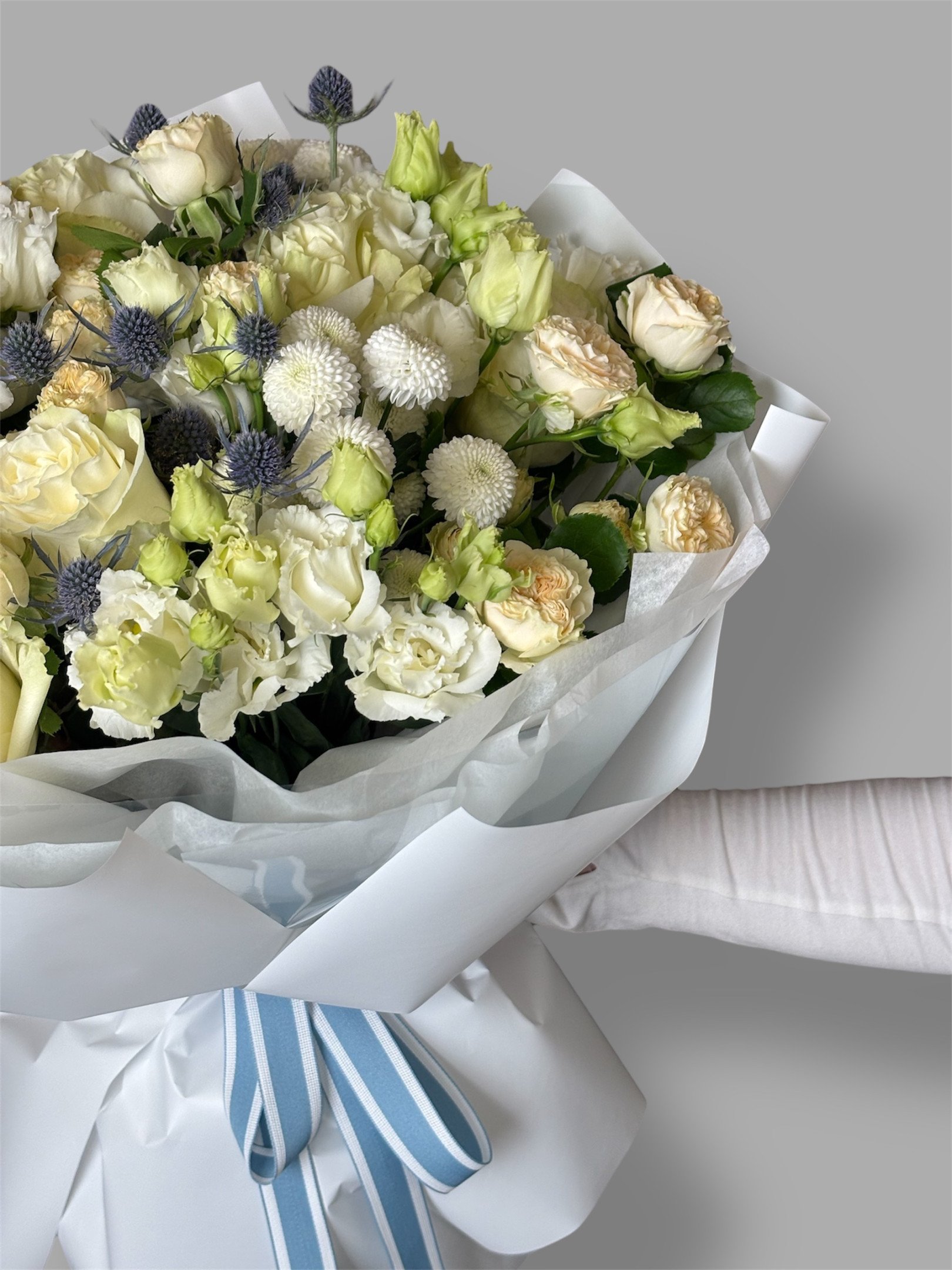В случае отсутствия в наших магазинах цветов, входящих в состав букета, мы предложим вам заменить их на равные по стоимости либо проконсультируем по подбору другого букета.