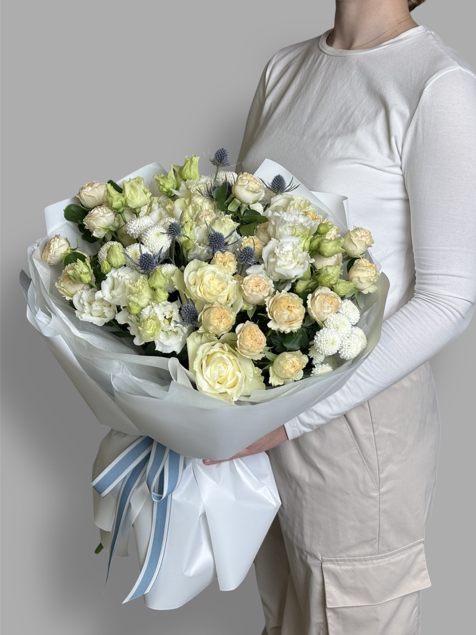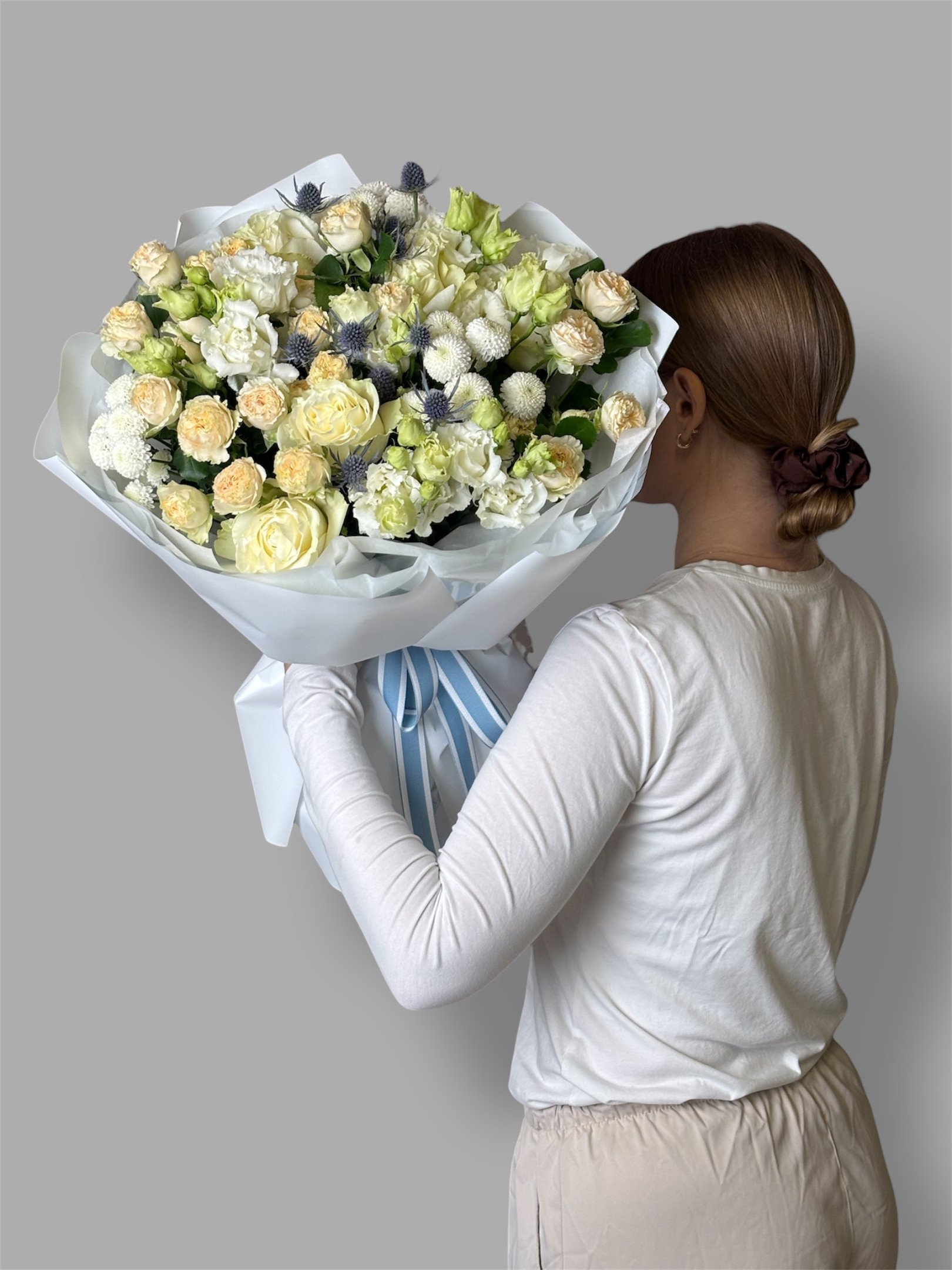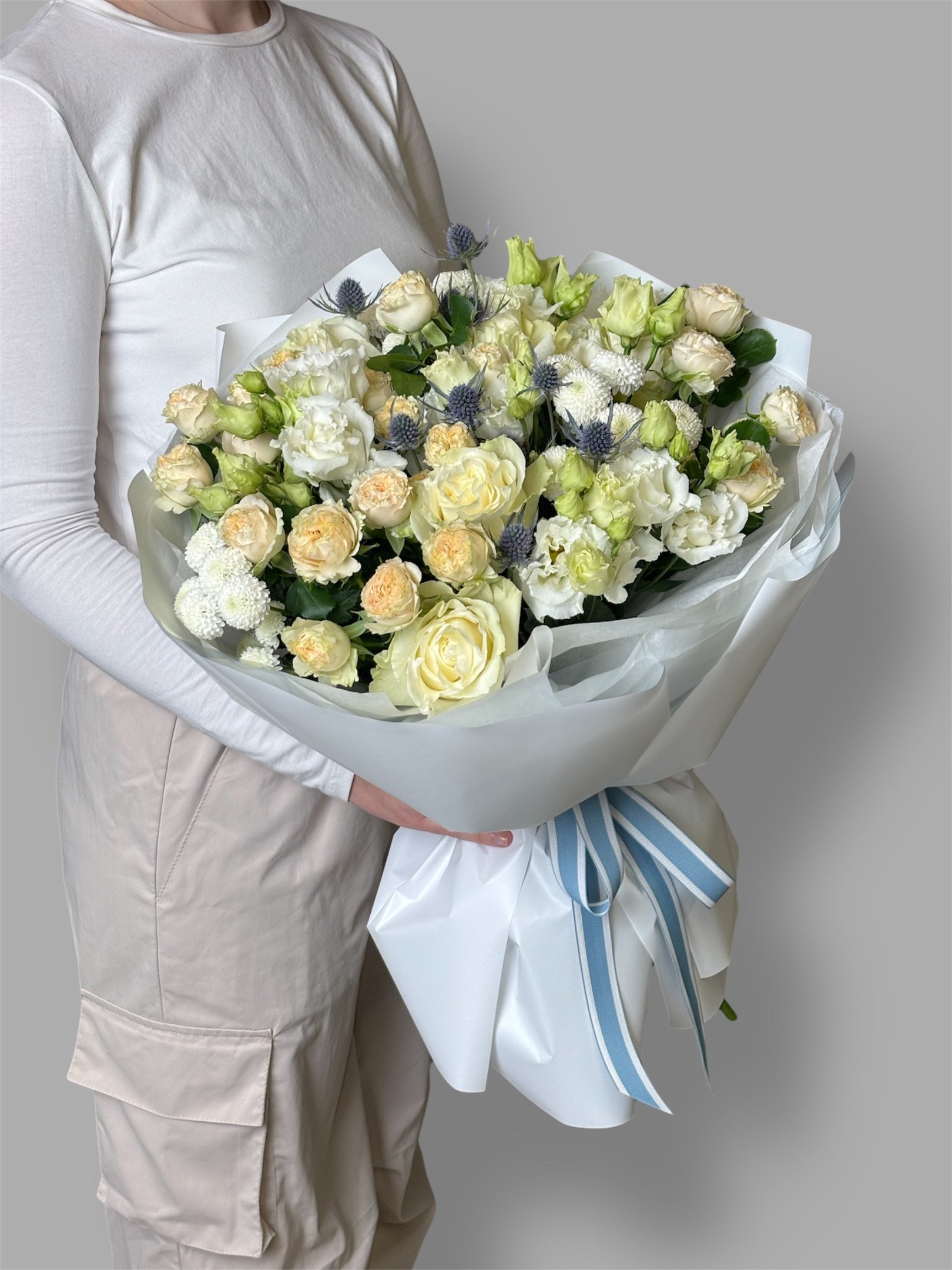 В случае отсутствия в наших магазинах цветов, входящих в состав букета, мы предложим вам заменить их на равные по стоимости либо проконсультируем по подбору другого букета.