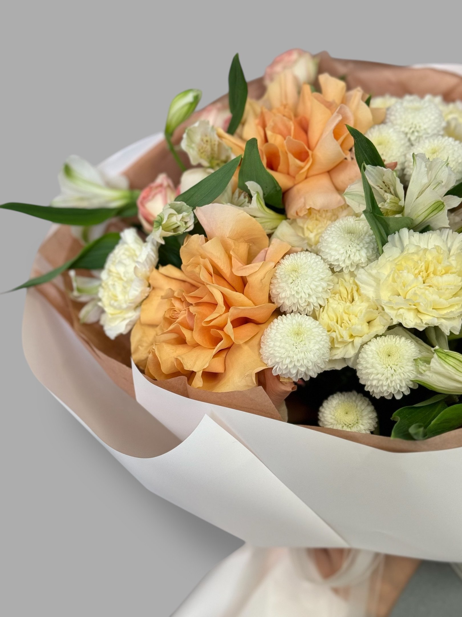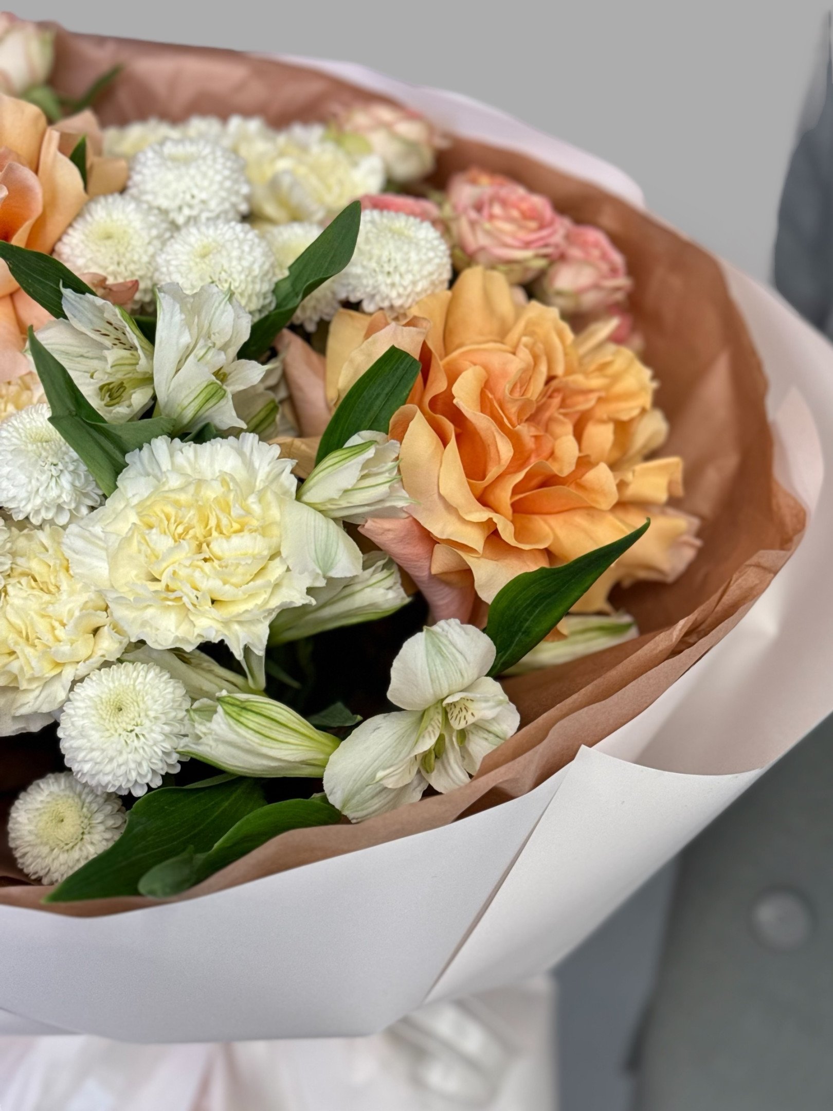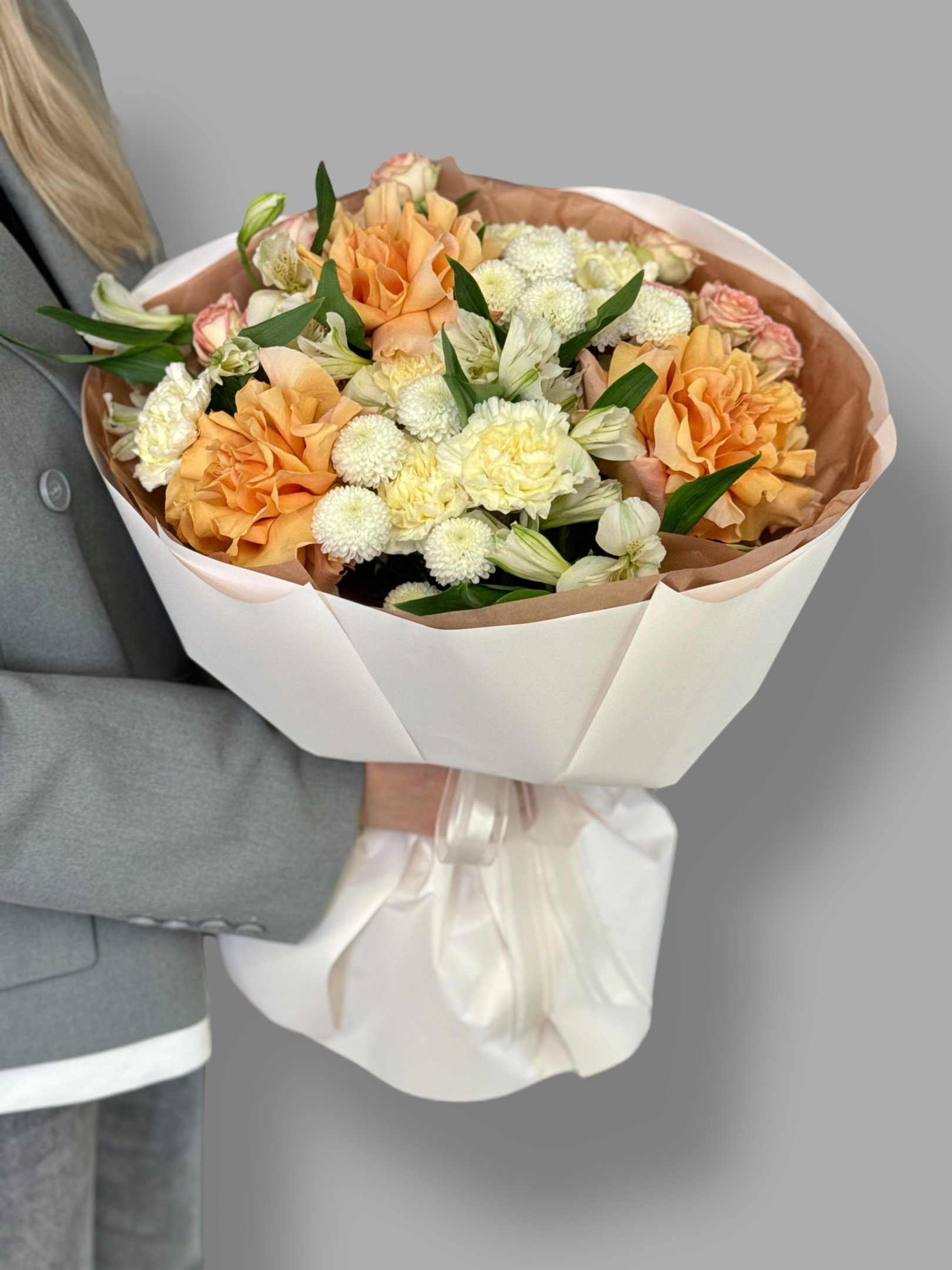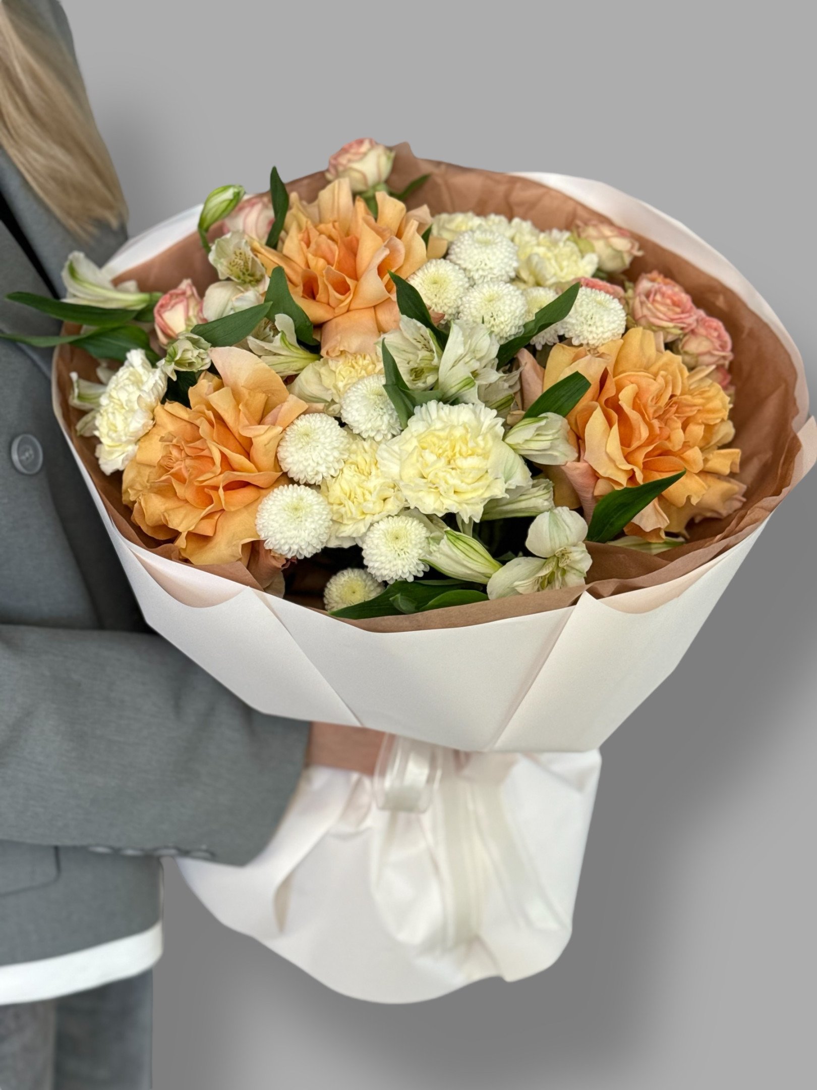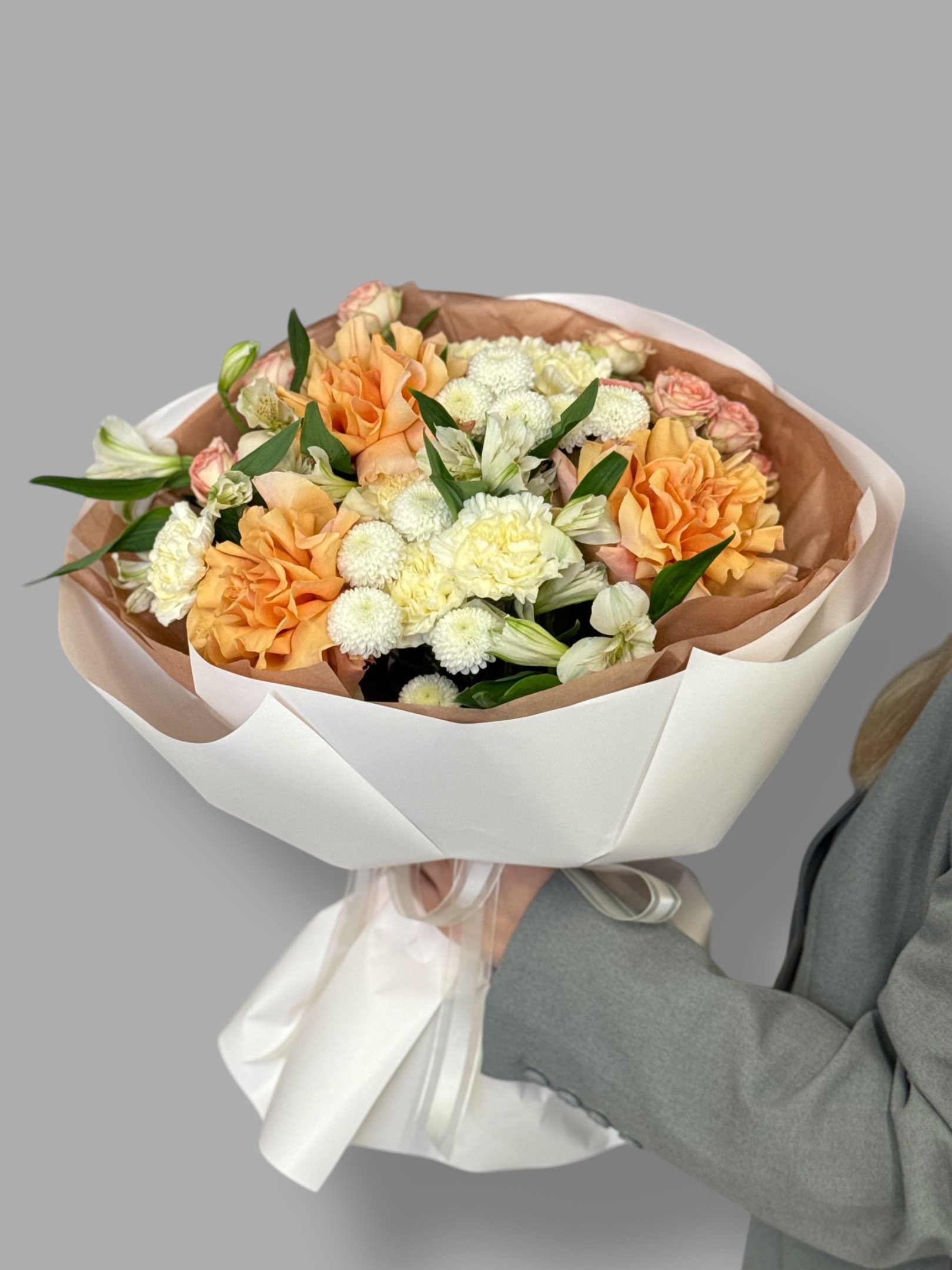 В случае отсутствия в наших магазинах цветов, входящих в состав букета, мы предложим вам заменить их на равные по стоимости либо проконсультируем по подбору другого букета.