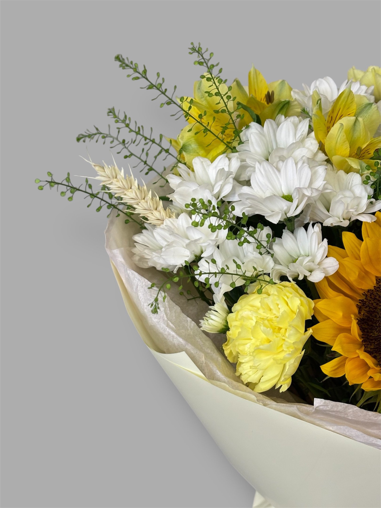 В случае отсутствия в наших магазинах цветов, входящих в состав букета, мы предложим вам заменить их на равные по стоимости либо проконсультируем по подбору другого букета.