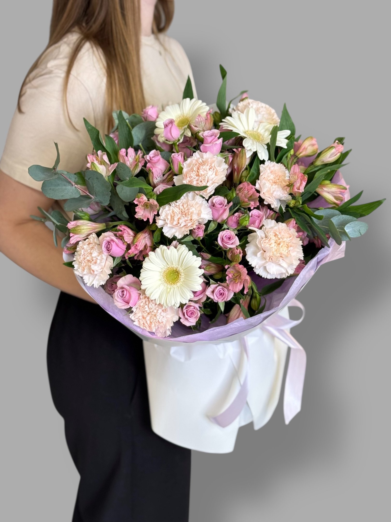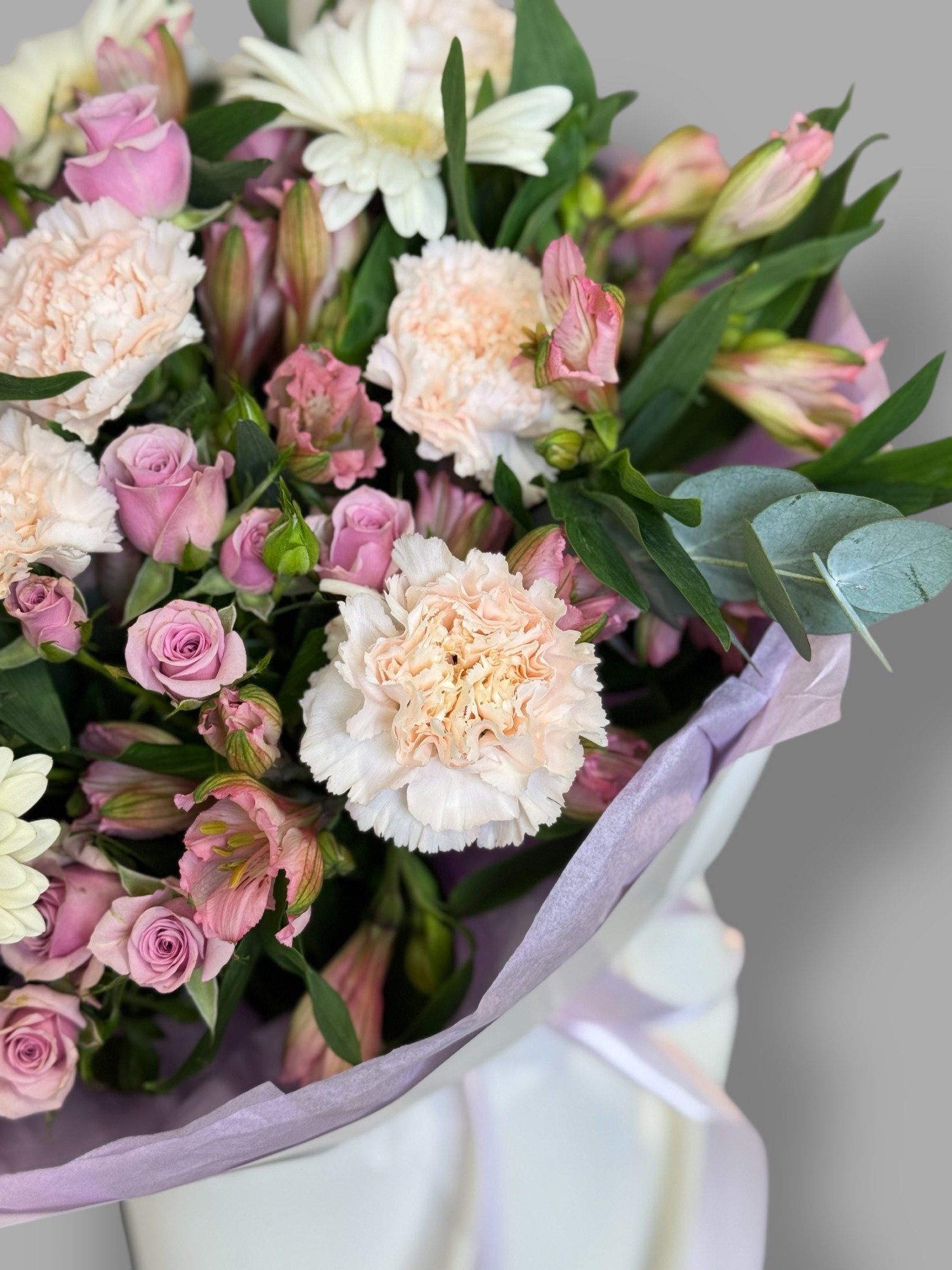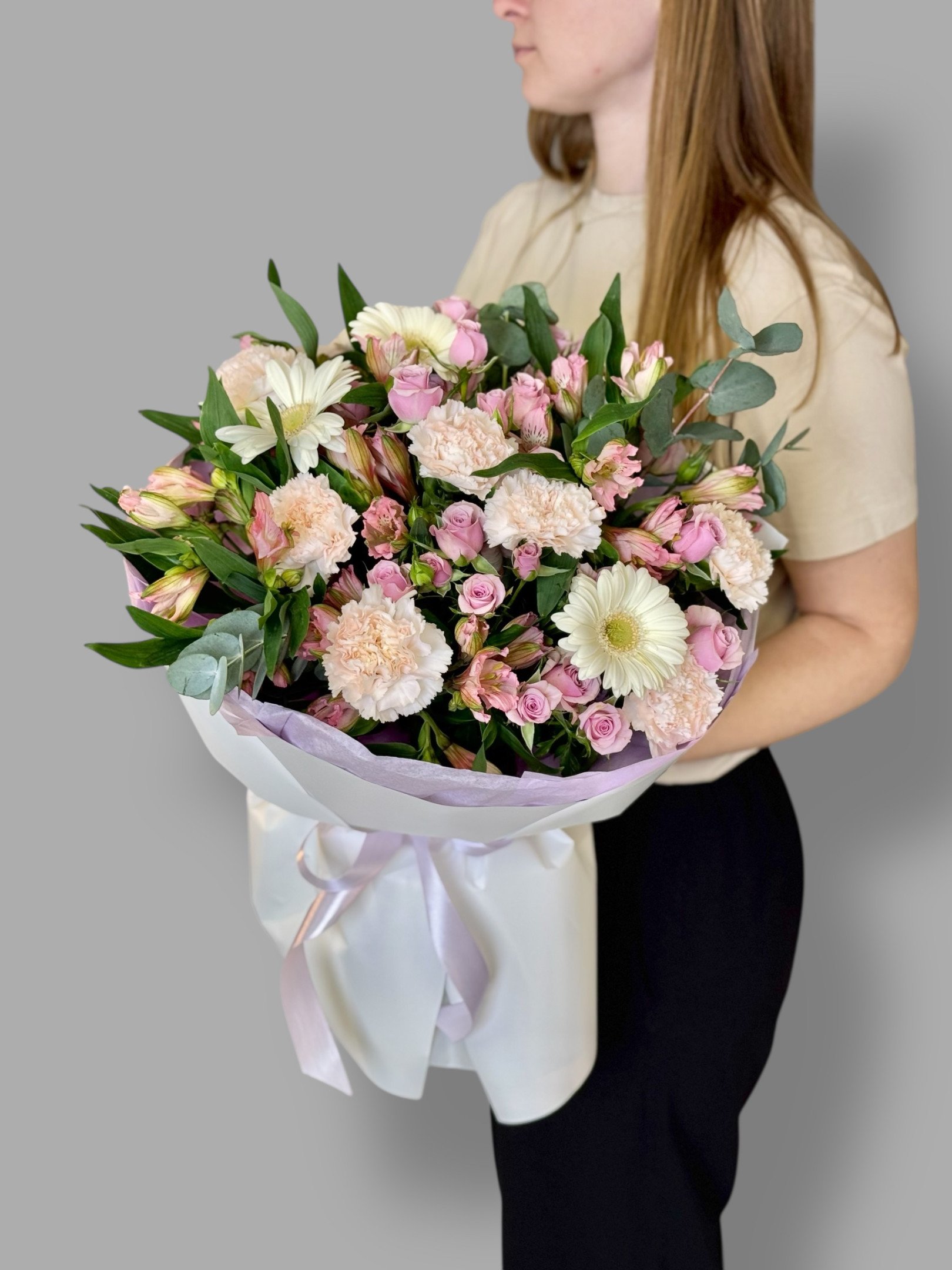 В случае отсутствия в наших магазинах цветов, входящих в состав букета, мы предложим вам заменить их на равные по стоимости либо проконсультируем по подбору другого букета.