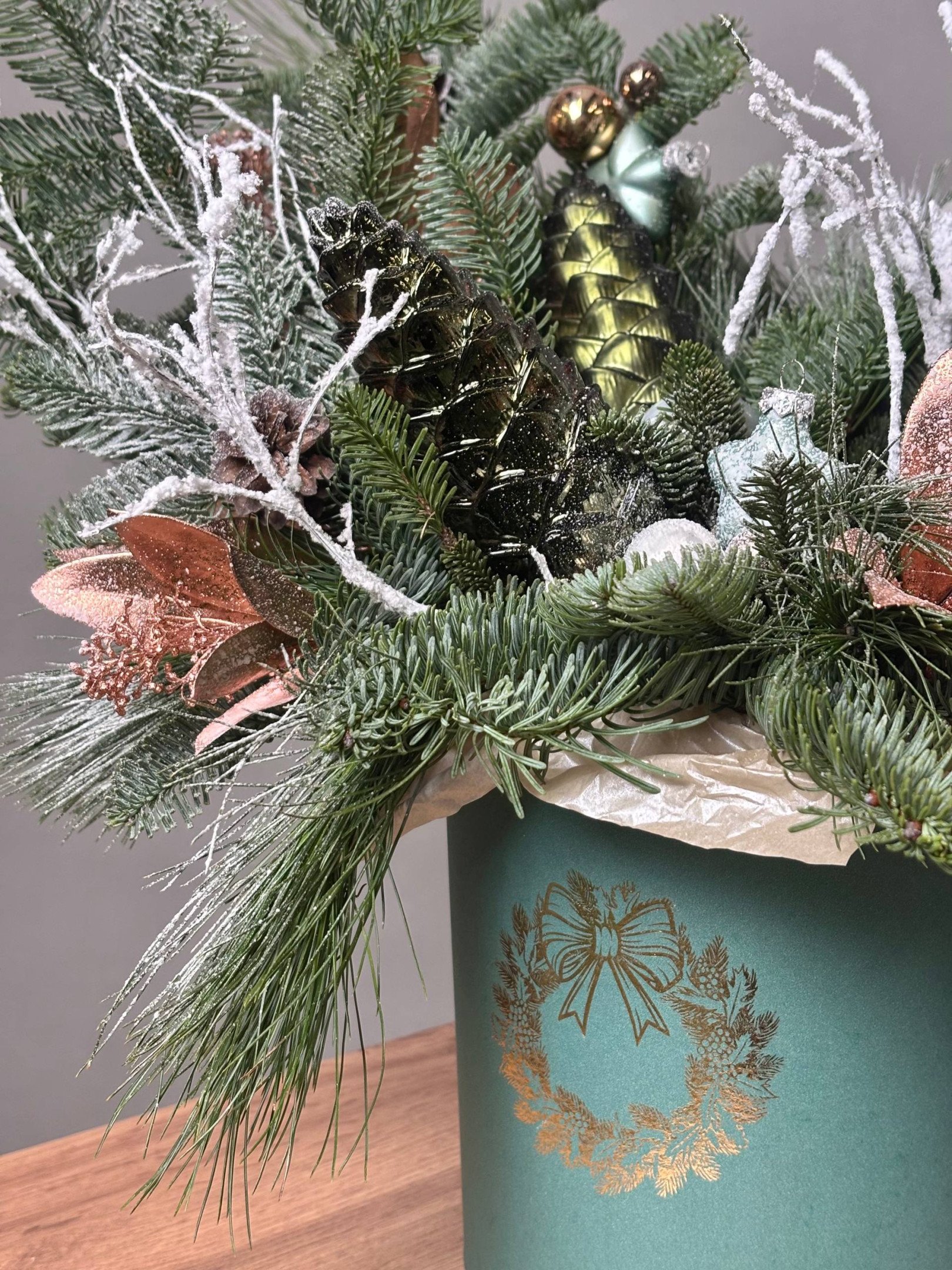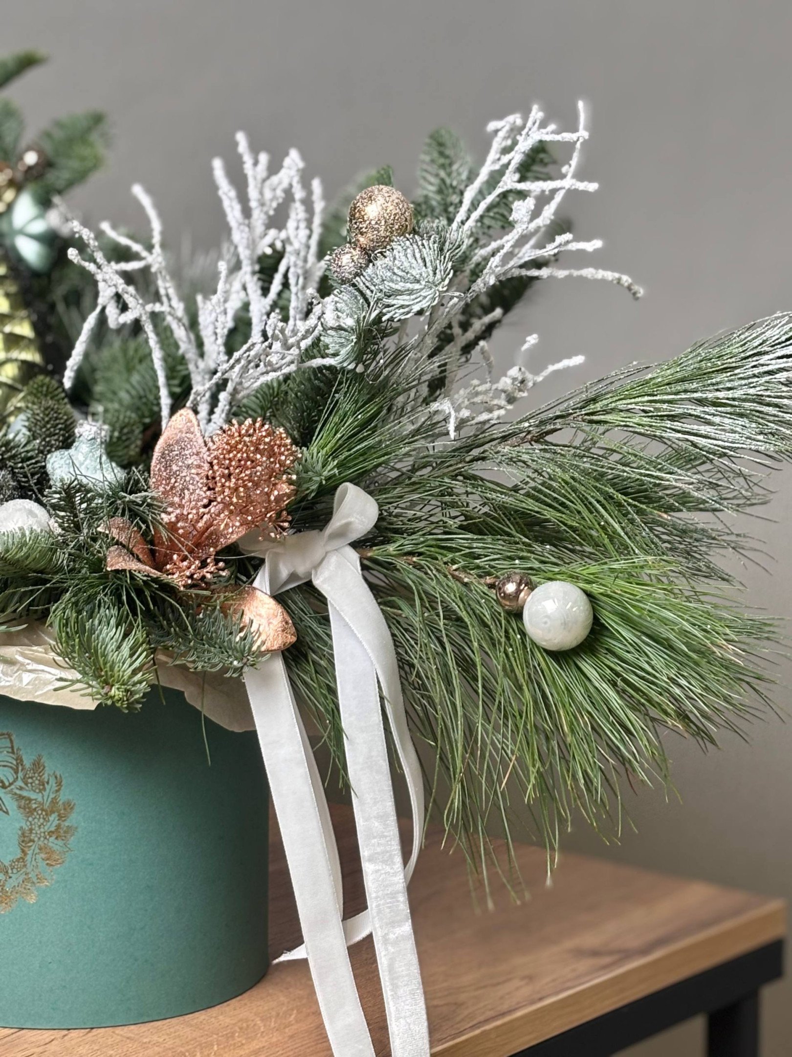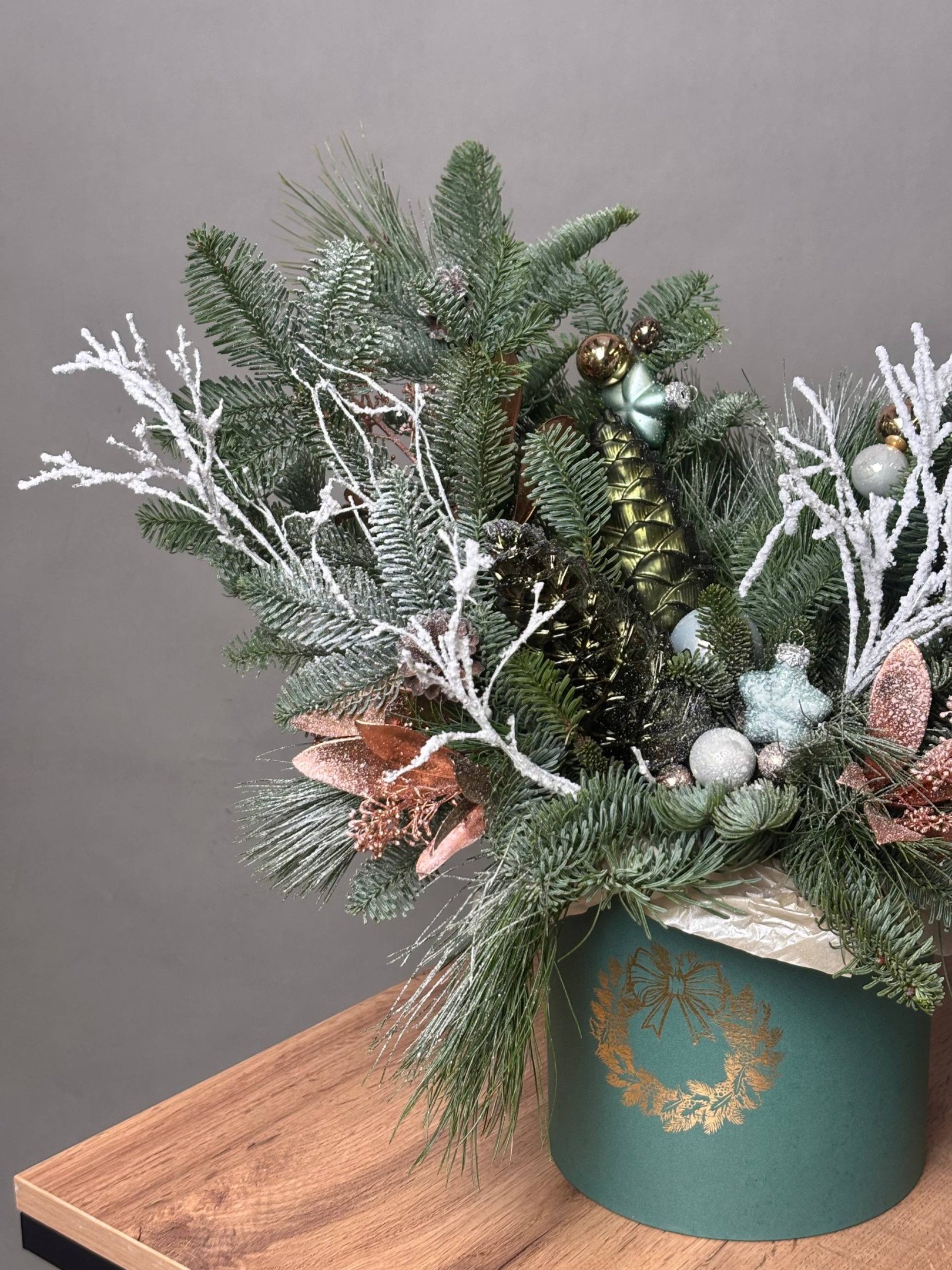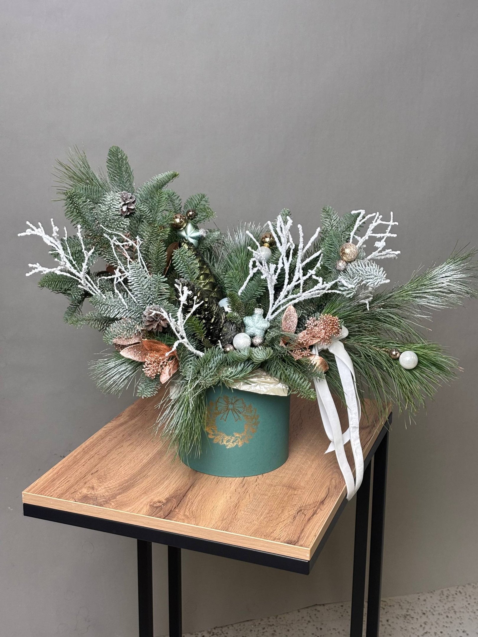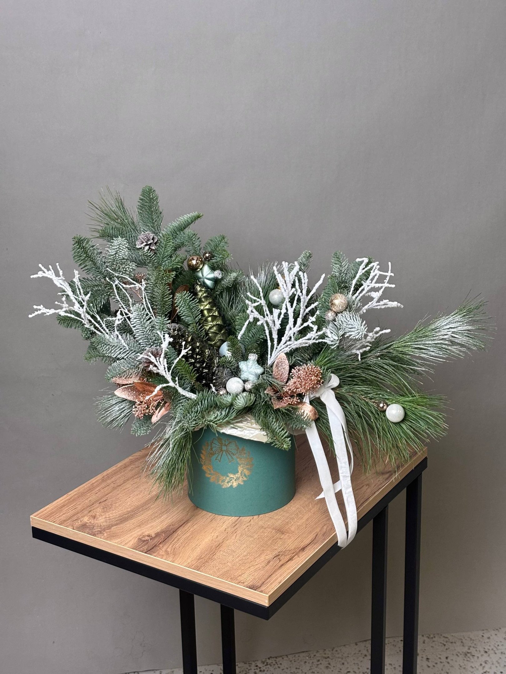 Зимняя композиция в шляпной коробке №12