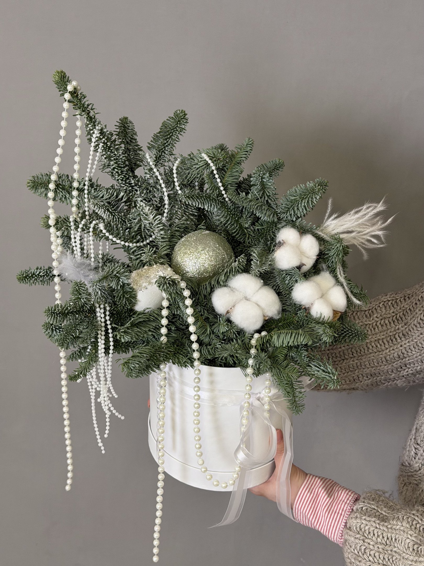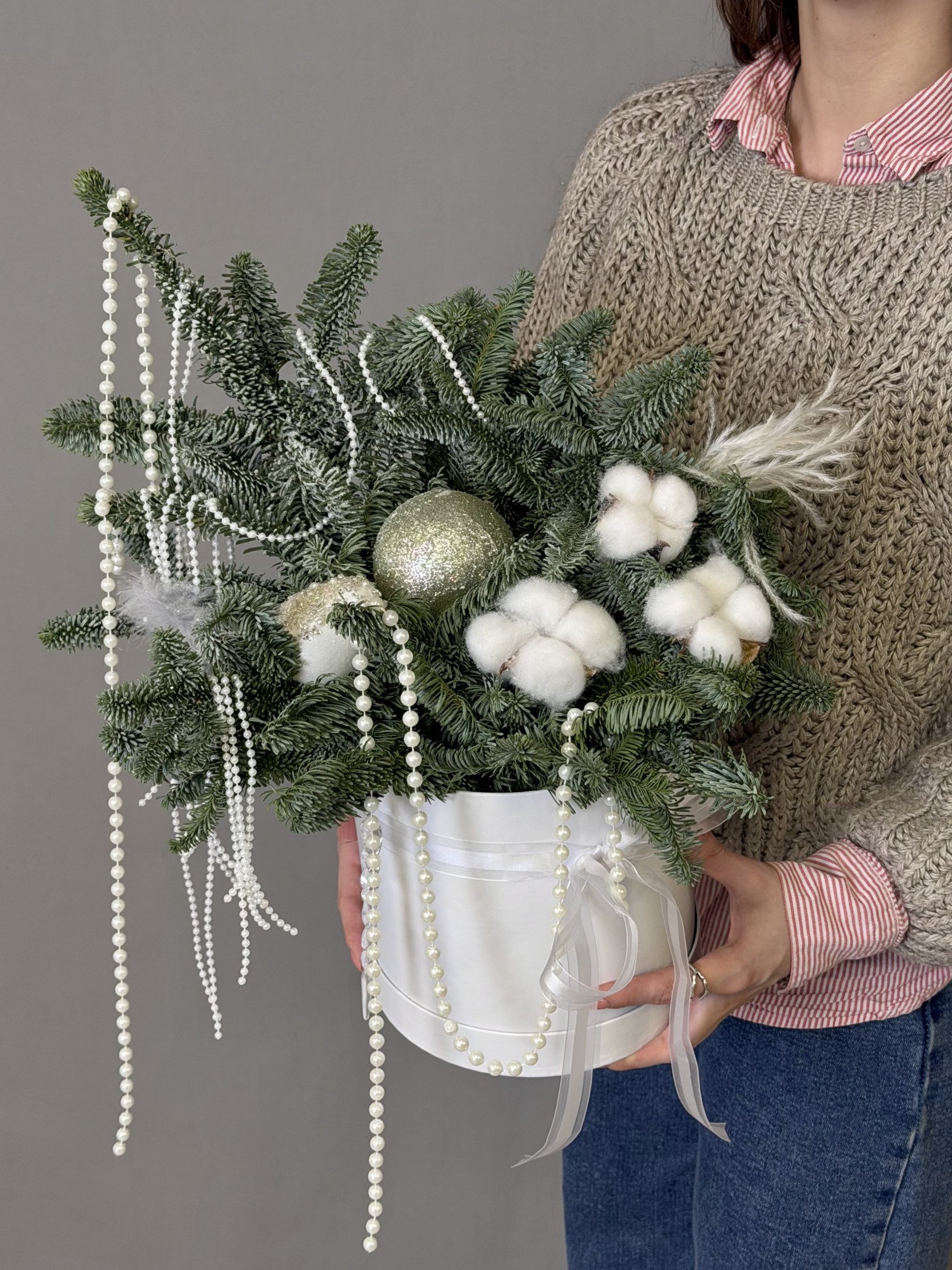 Зимняя композиция в шляпной коробке №2 купить в Минске с доставкой, цена недорого